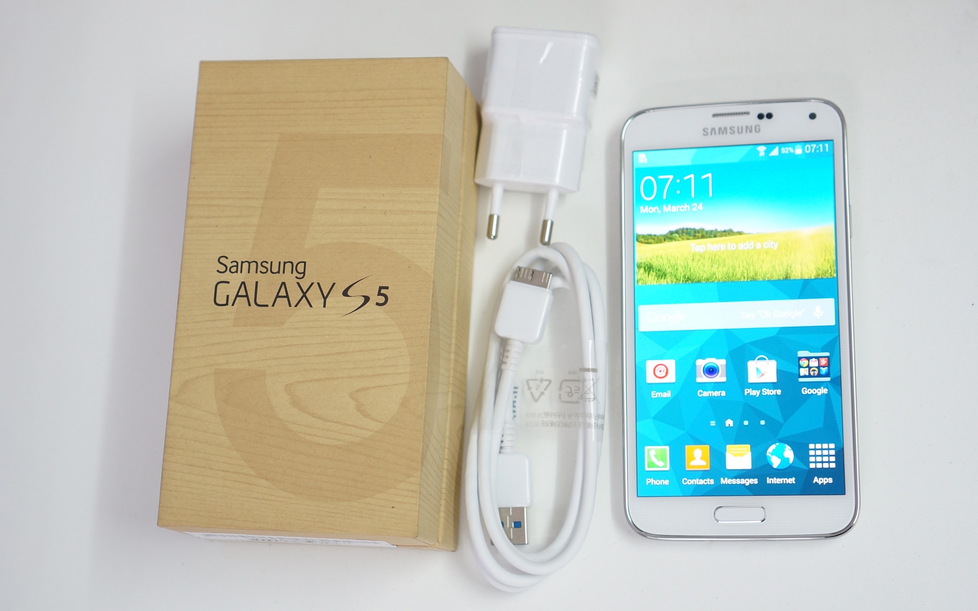 Chiếc Galaxy S5 bản xách tay nguyên hộp đầu tiên đã về đến Việt Nam. Theo anh Tuấn Anh, chủ cửa hàng XDA Mobile (đơn vị vừa nhập về chiếc S5), đây là một sản phẩm khóa mạng, dùng chip Snapdragon 801 và không nhận SIM Việt. Hiện cửa hàng này chưa phát giá cho chiếc S5 màu trắng nói trên. Hộp đựng Samsung Galaxy S5 được làm từ chất liệu giấy tái chế hoàn toàn quen thuộc.