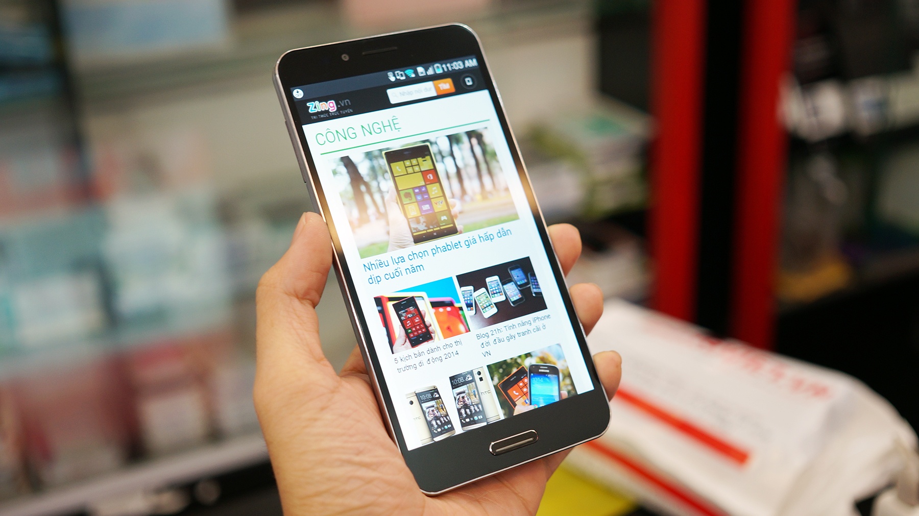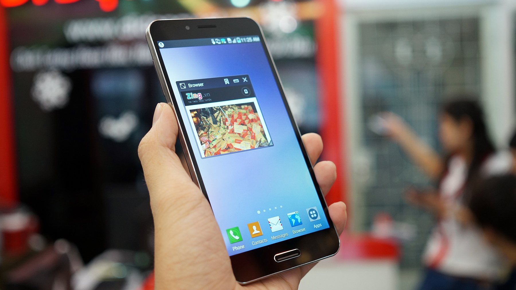 | Tuy có màn hình lớn, nhưng A900 vẫn duy trì được độ mỏng cần thiết. Bao xung quanh máy là một đường viền kim loại nhưng không có những đường vân xước như Galaxy Note 3. |