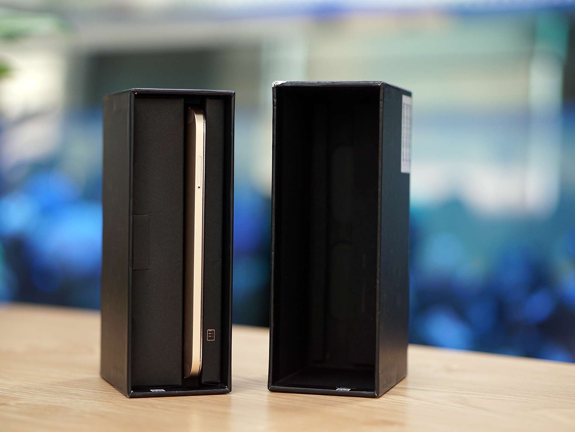 | Hộp đựng của máy khá đặc biệt khi miệng hộp ở mặt hẹp nhất. Người dùng lấy máy và phụ kiện ra khỏi hộp theo chiều ngang. |