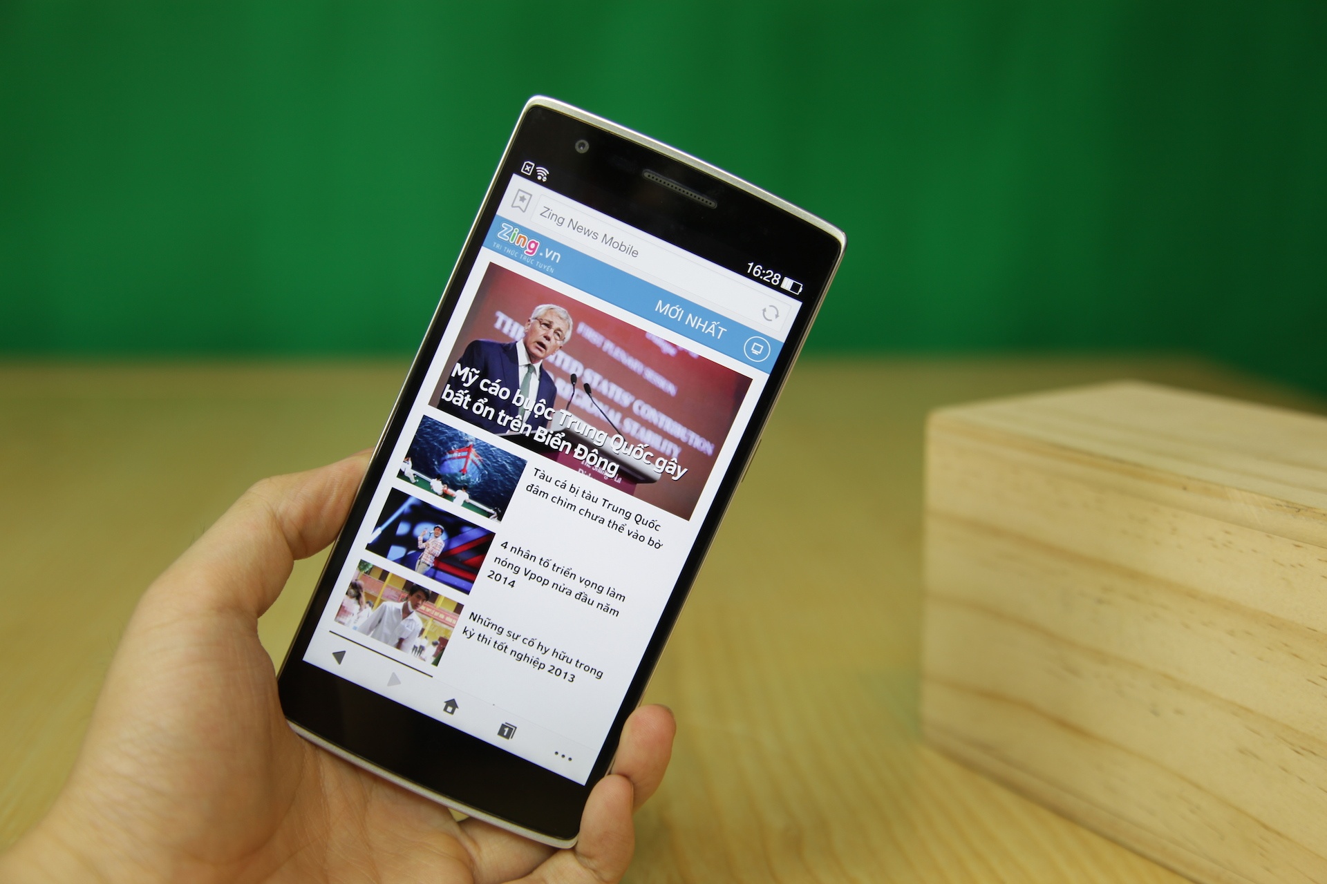 | OnePlus One có cấu hình thuộc hàng top Android hiện Nay. Máy sở hữu vi xử lý lõi tứ Qualcomm Snapdragon 801 2,5 GHz, RAM 3 GB. Phiên bản trong bài có bộ nhớ trong 64 GB. |