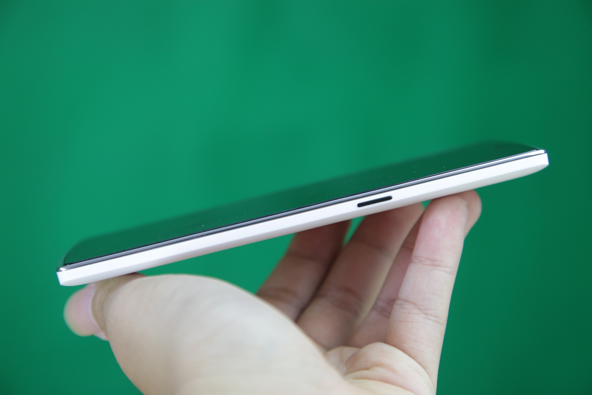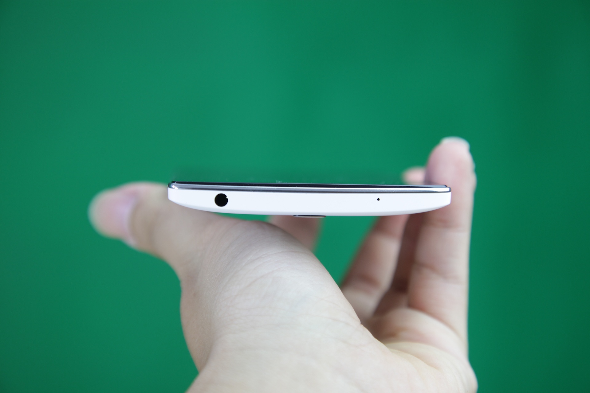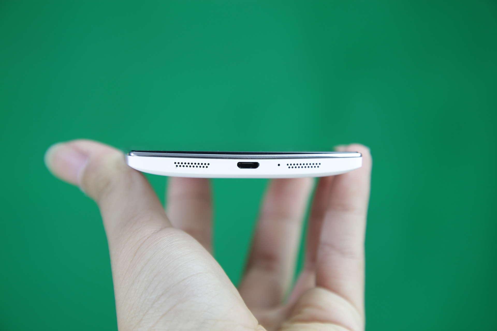 | Cạnh dưới là hai dải loa, mic và cổng MicroUSB. |