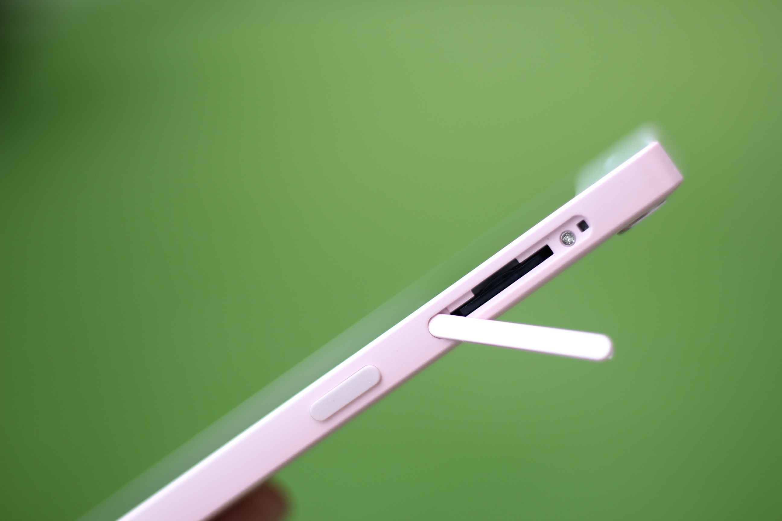 | Cạnh phải là phím nguồn và khe cắm SIM. Thiết kế dạng nắp đậy kín, khi mở người dùng cần ấn vào phía dưới. |