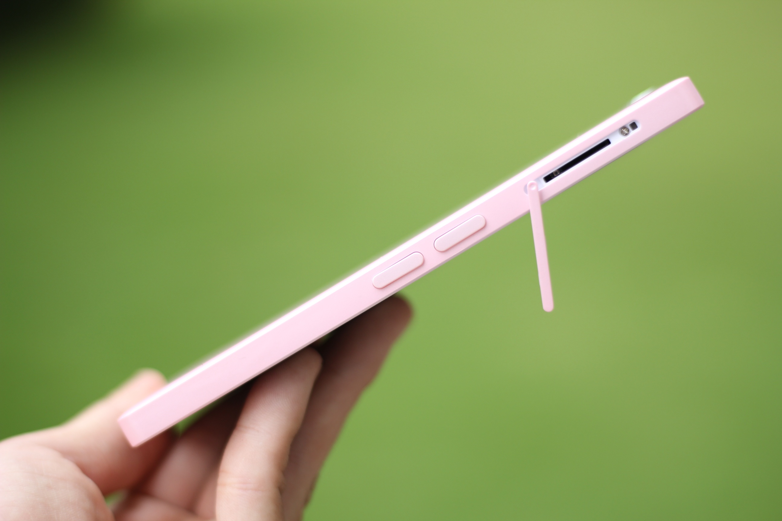| Cạnh trái là phím tăng giảm âm lượng, khe cắm thẻ nhớ. |