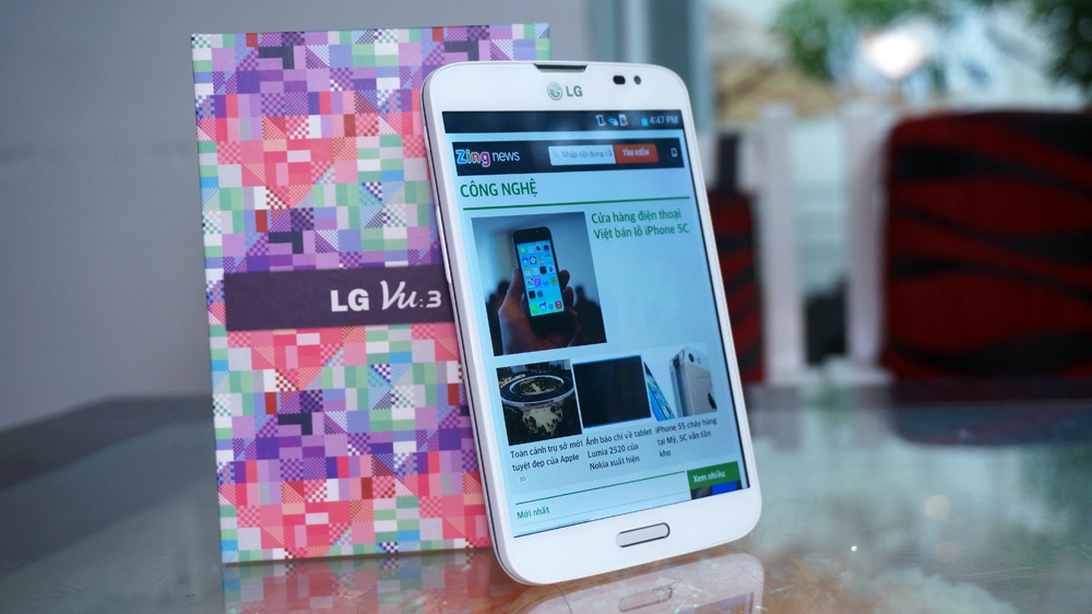 | Thoạt nhìn, Vu 3 có vẻ "mập mạp" và gần như hình vuông. Model này phù hợp với những người có thói quen dùng điện thoại bằng hai tay. Đây cũng là "vũ khí" của LG nhằm cạnh tranh với mẫu Galaxy Note 3 của Samsung. |