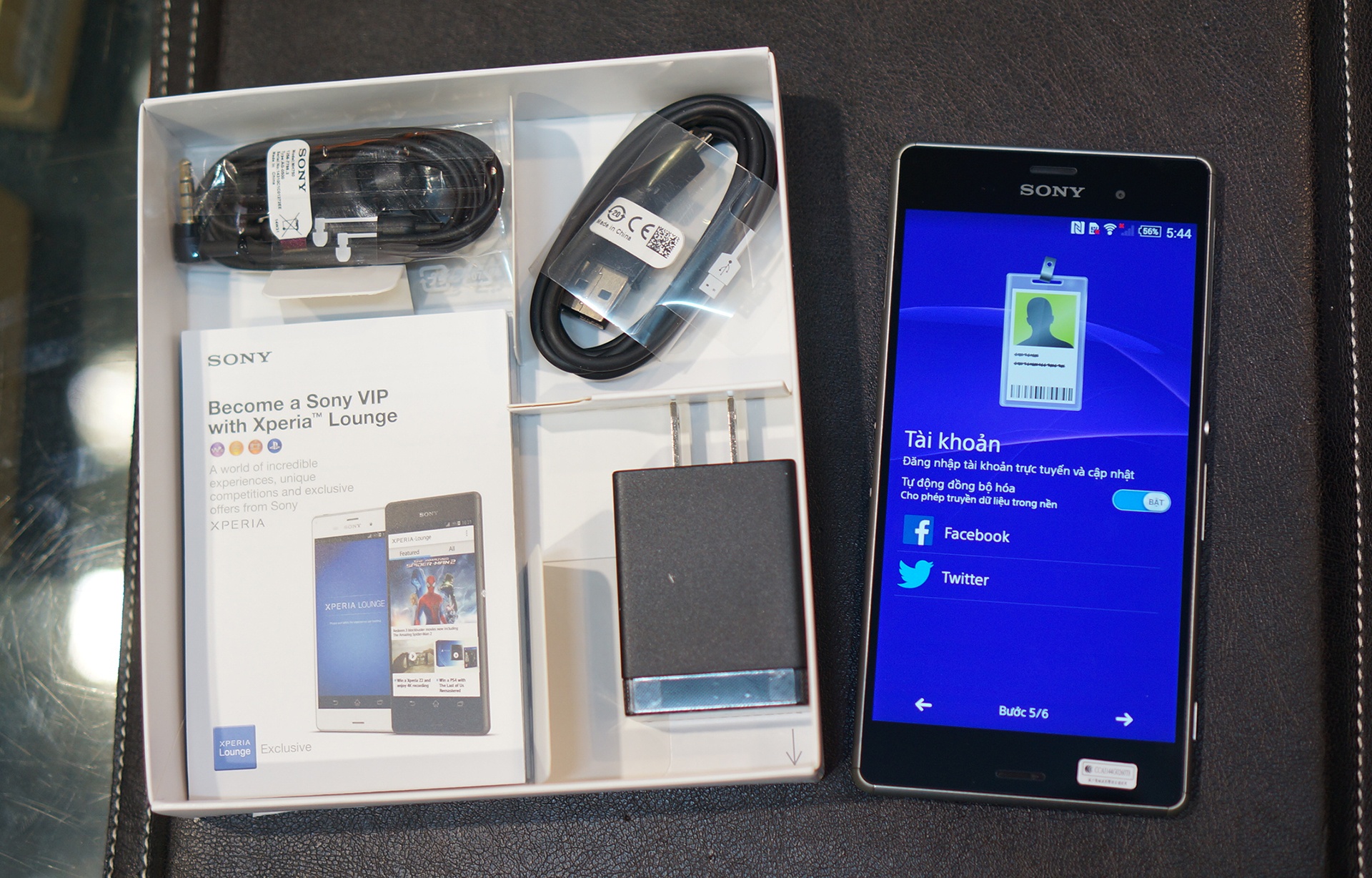 | Hộp và phụ kiện đi kèm tương tự như Xperia Z2. Theo anh Lộc, đại diện cửa hàng Vĩnh Phát, chiếc máy này được nhập về từ Đài Loan và hiện được bán với giá 18,6 triệu đồng. |