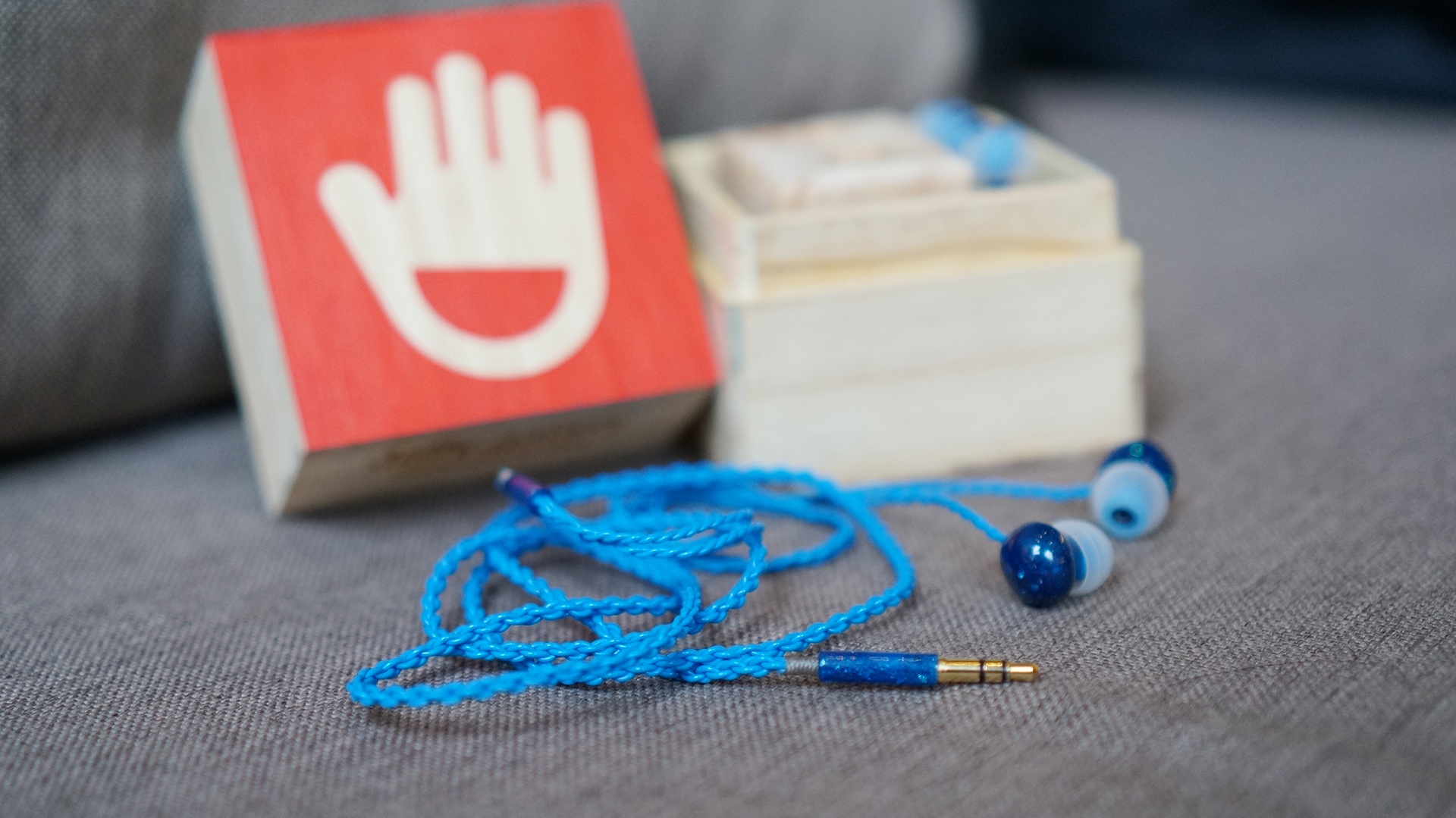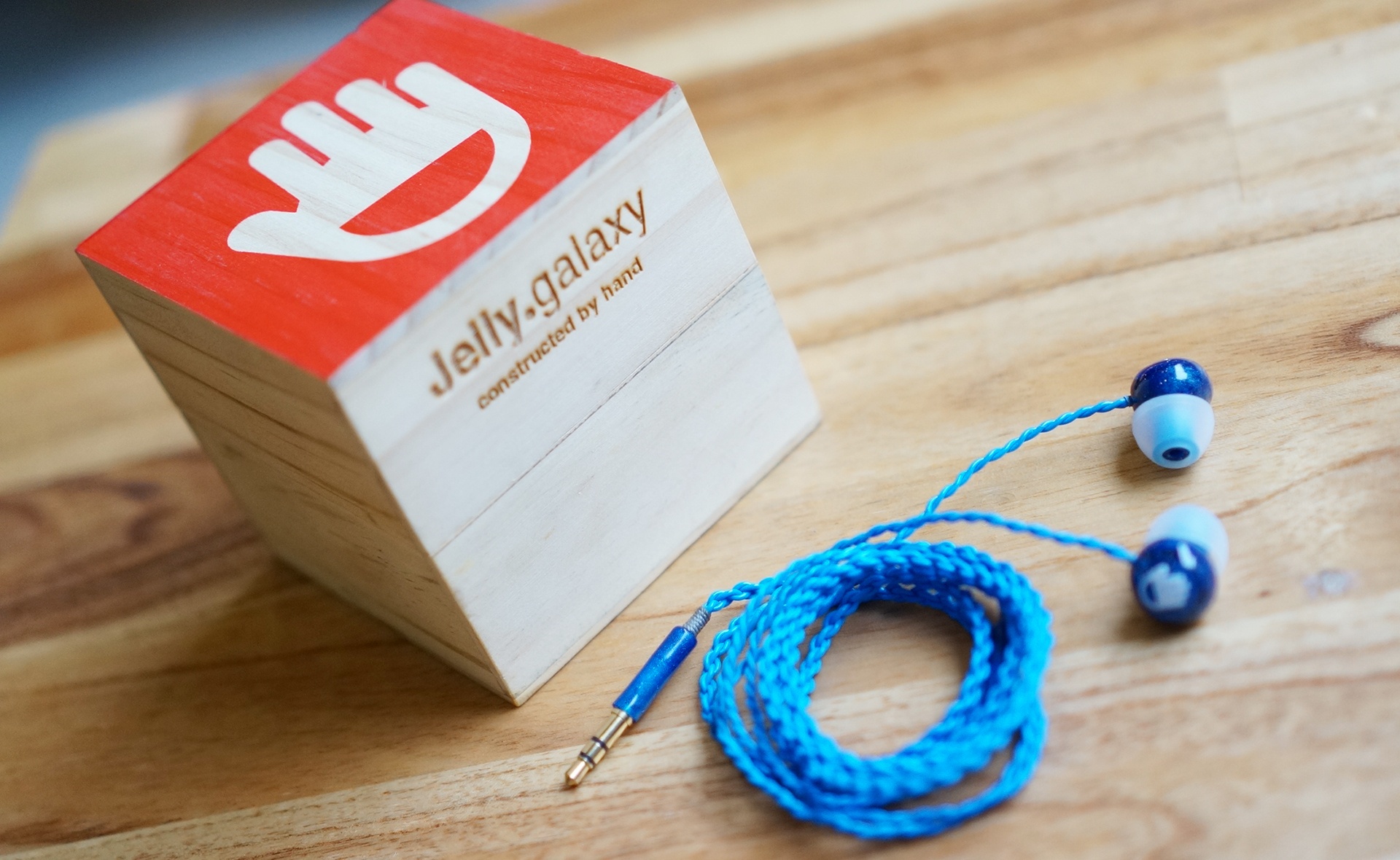 | Trái ngược với Jelly Ear, Jelly Galaxy được phối màu xanh biển cho cả dây đeo lẫn phần thân tai nghe. Các sợi dây dẫn được tết bằng tay và khó bị rối. |