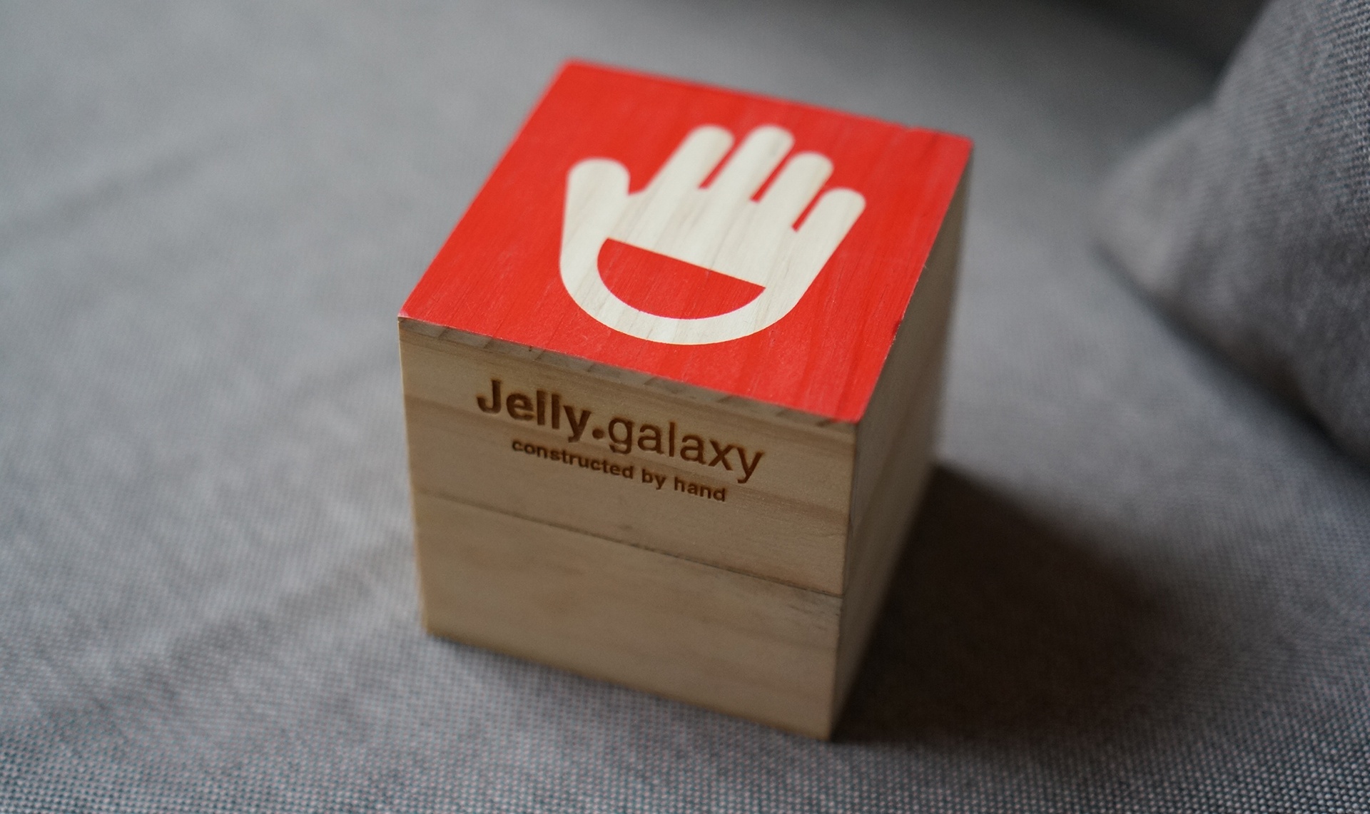 | Khác với Jelly Ear, Jelly Galaxy không được đựng trong một hộp toàn mút xốp mà được đặt cẩn thận trong một khối gỗ có khoét lỗ. |