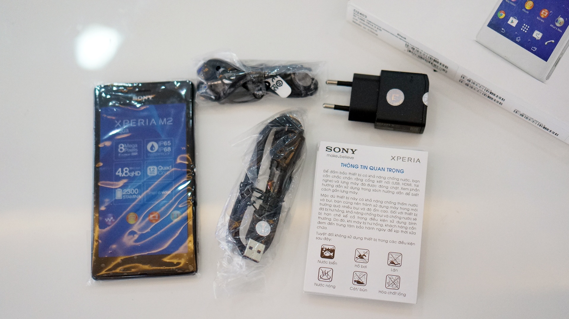 Mở hộp Xperia M2 Aqua chống nước và bụi giá 7,5 triệu đồng