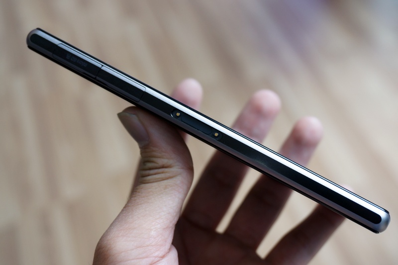| Cạnh trái là dock sạc, cổng sạc và khe cắm thẻ nhớ. |