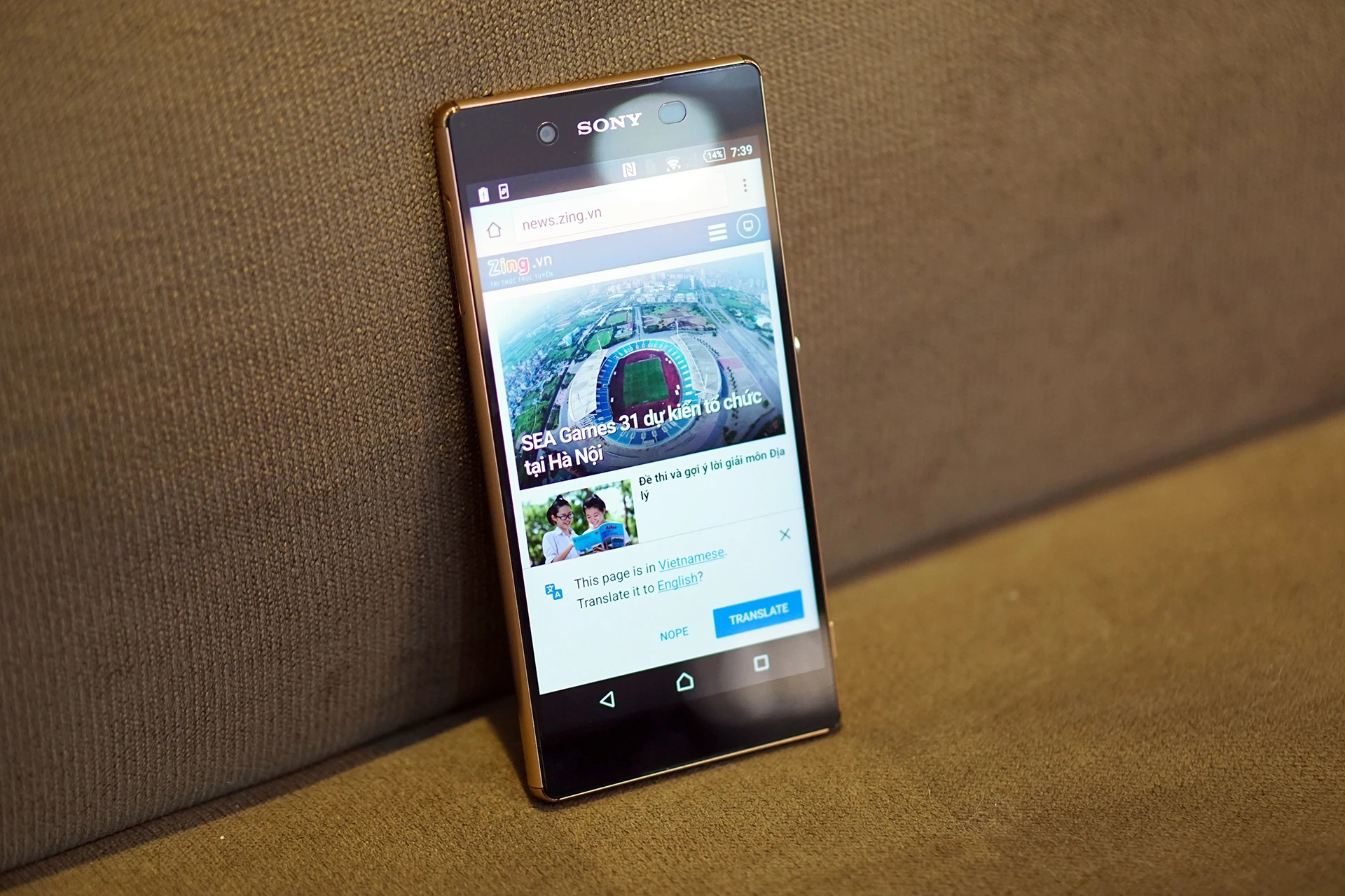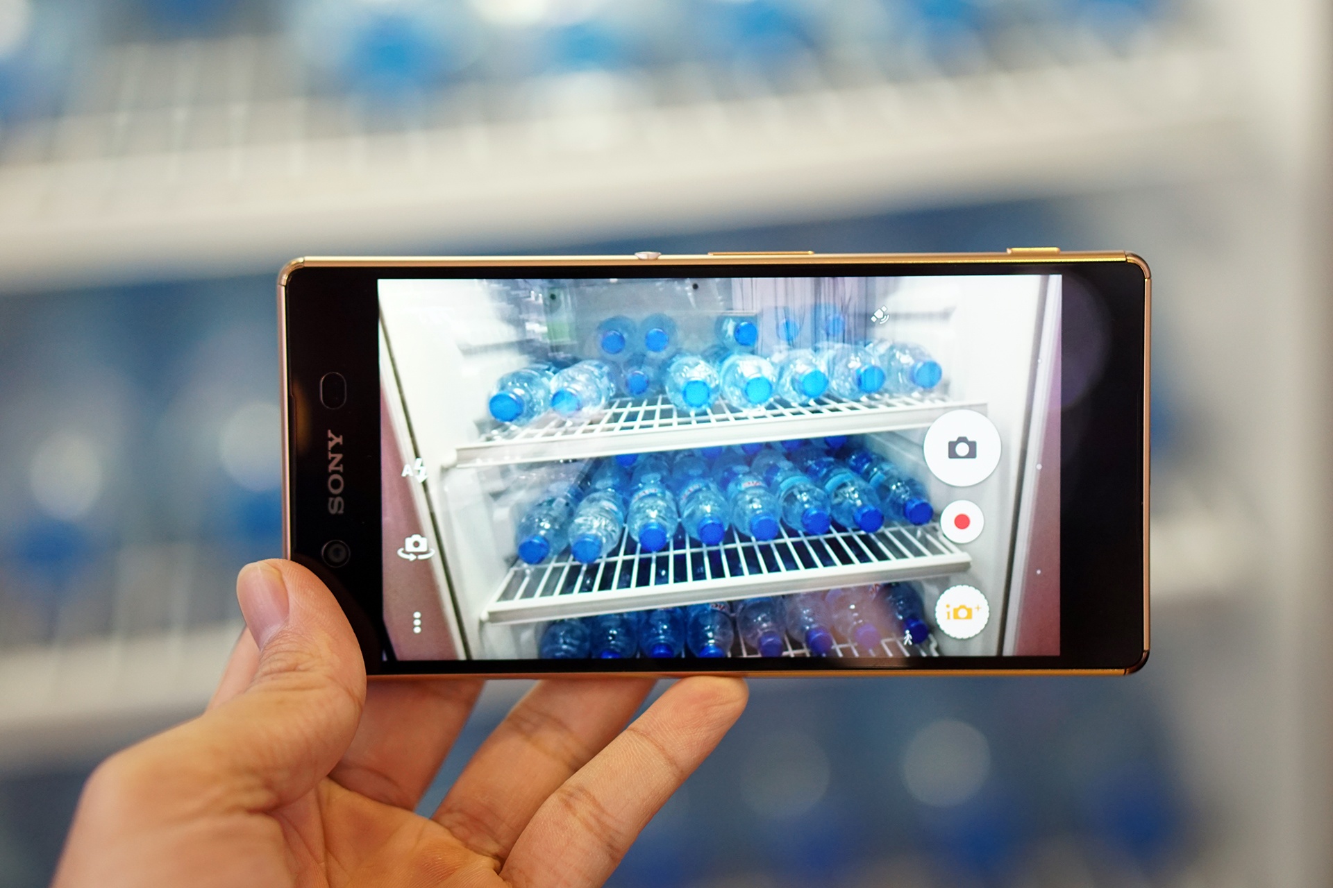 | Đây là mẫu Xperia Z3+ phiên bản màu vàng đồng. Model này là phiên bản quốc tế của Xperia Z4 bán ra tại Nhật tháng trước. |