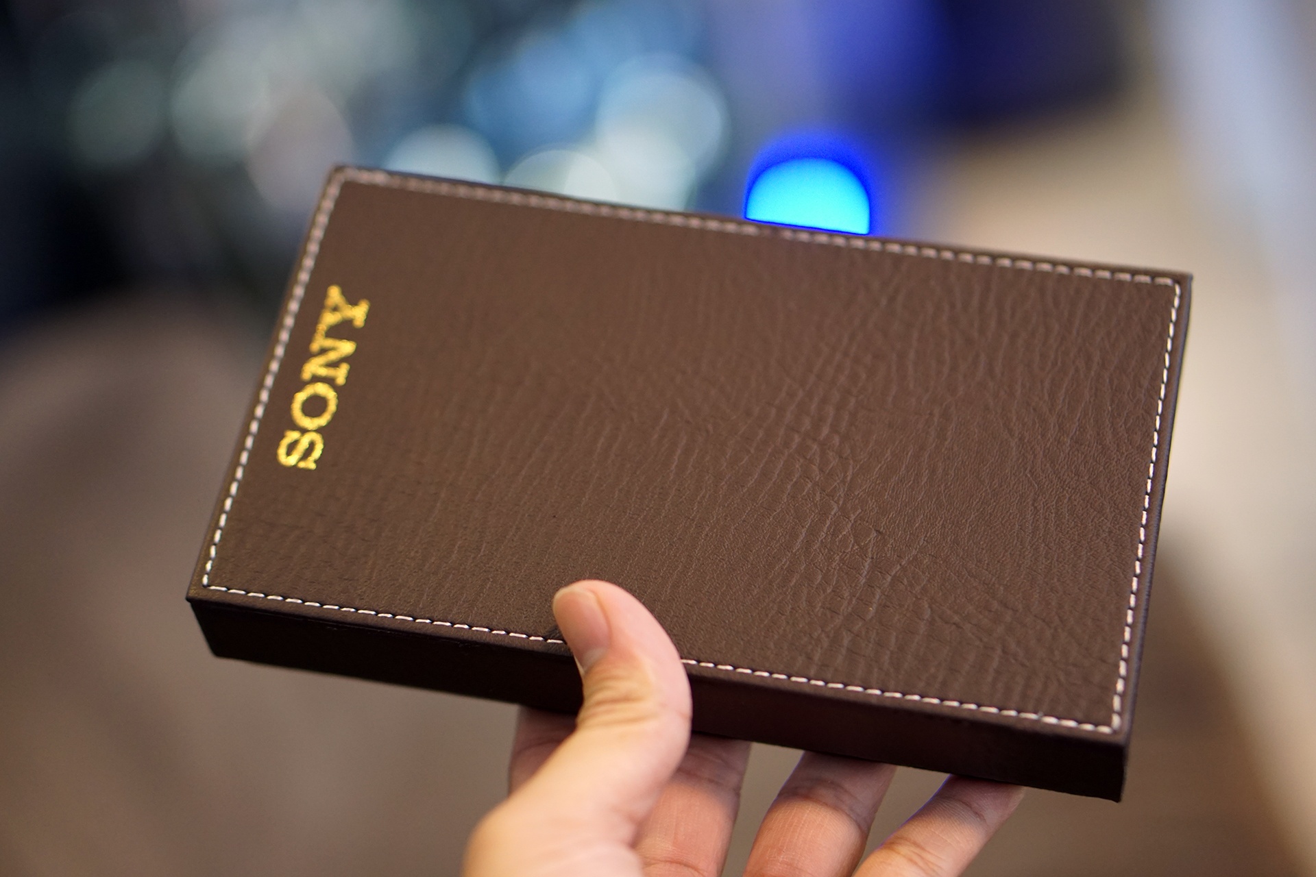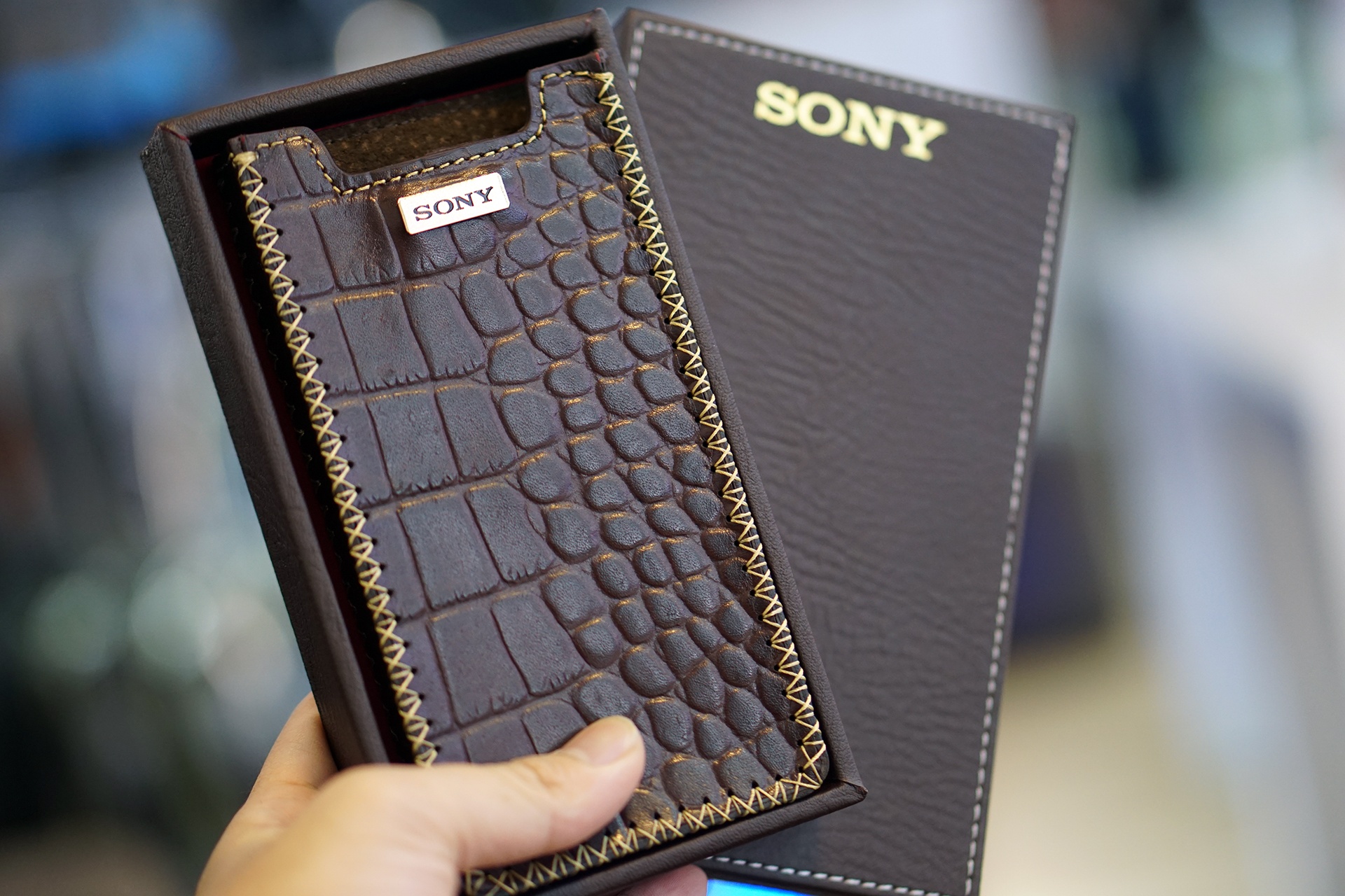 | Đi kèm với máy là hộp da cá sấu. |