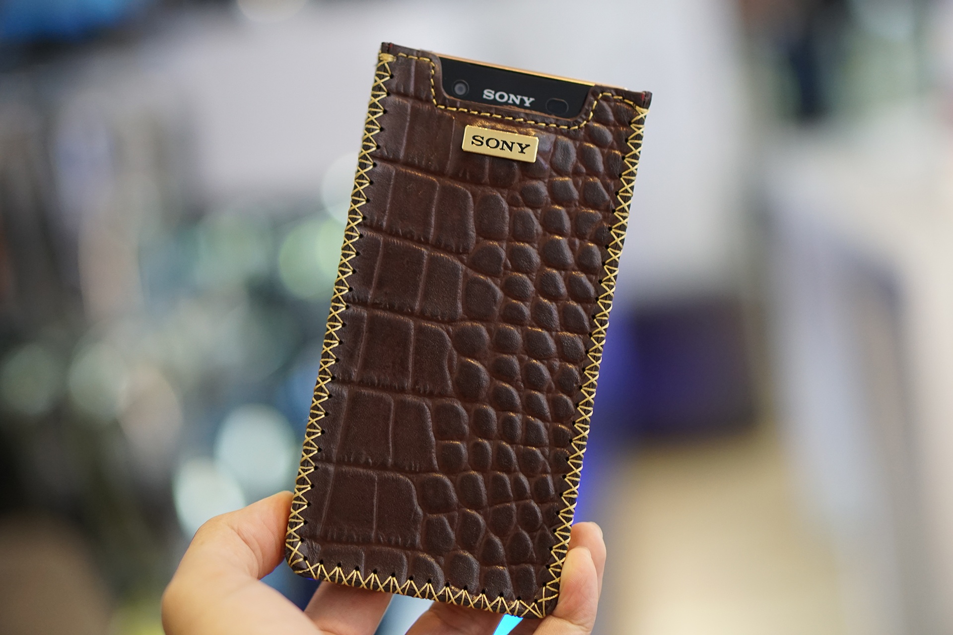 | Mẫu bao da cá sấu cứng cáp và có dây rút để lấy máy ra khỏi bao. |