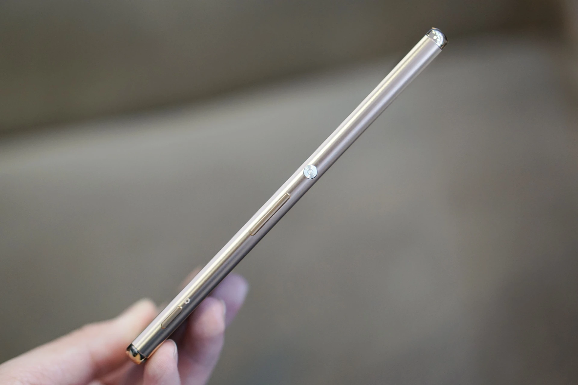 | Nút nguồn hơi nhọn, phím âm lượng và chụp ảnh vẫn được bố trí bên cạnh phải. |