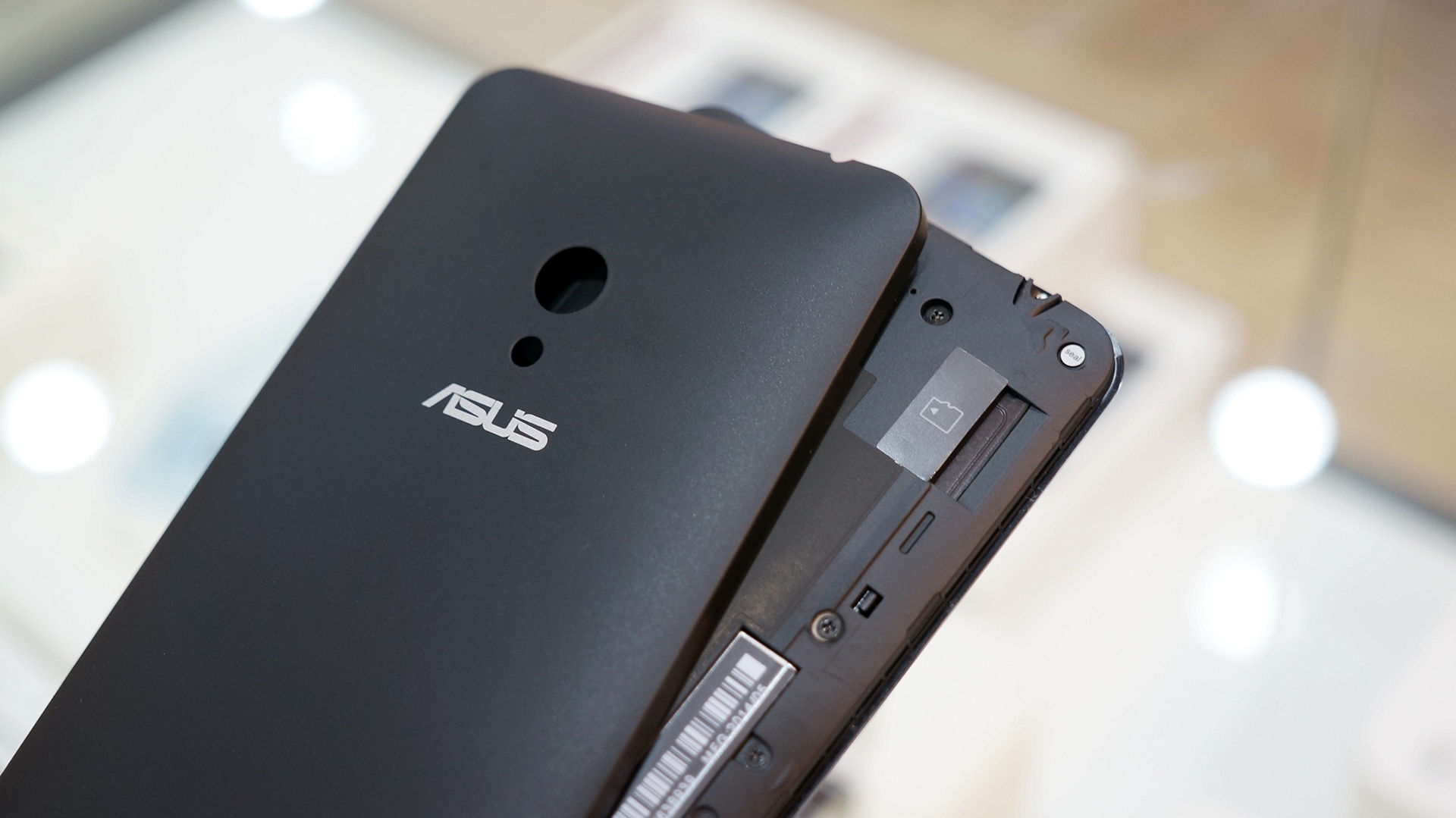 | Sau khi mở nắp lưng, người dùng có thể gắn thêm SIM. Pin của Zenfone không thể tháo rời. |