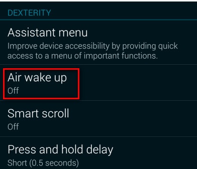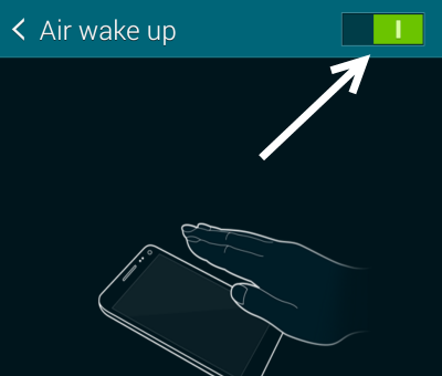 Đó là nhờ vào tính năng Air Wake Up đã được Samsung tích hợp sẵn trên S5. Tính năng này được thực hiện thông qua cảm biến tiệm cận phía trước thiết bị giống như khi bạn đàm thoại vậy. Người dùng Samsung Galaxy S5 có thể bật tính năng Air Wake Up trong cài đặt của máy như sau: