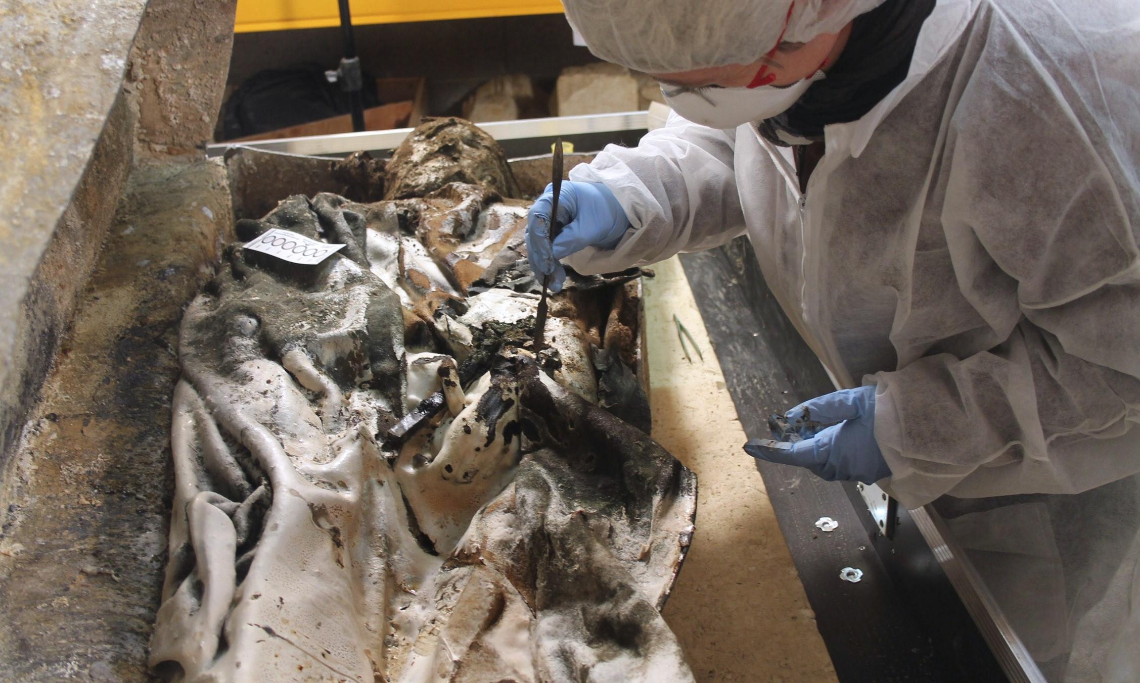 Nhóm chuyên gia cũng thu thập mô để xác định ADN và kiểm tra các mầm bệnh có trong xác ướp. |