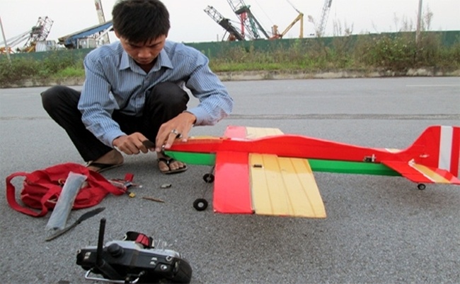 | Những tay chơi máy bay tập trung tại một góc khu dự án để lắp ráp, chuẩn bị cho máy bay. |