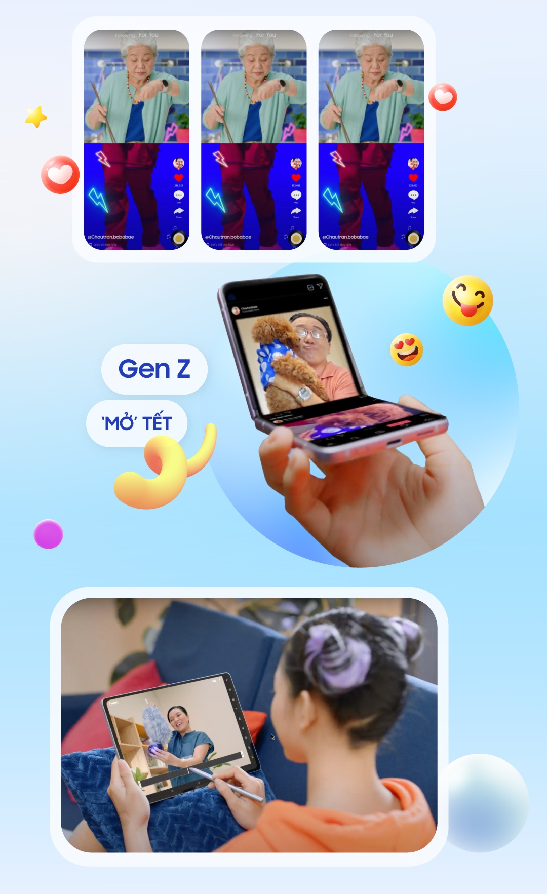 Cuối cùng, trong Tết Nhâm Dần 2022, Samsung tạo nên cầu nối chia sẻ thông điệp gắn kết các thế hệ với "Mở chuyện chưa kể", giúp giới trẻ kể một ngày lễ thật khác biệt và ý nghĩa.