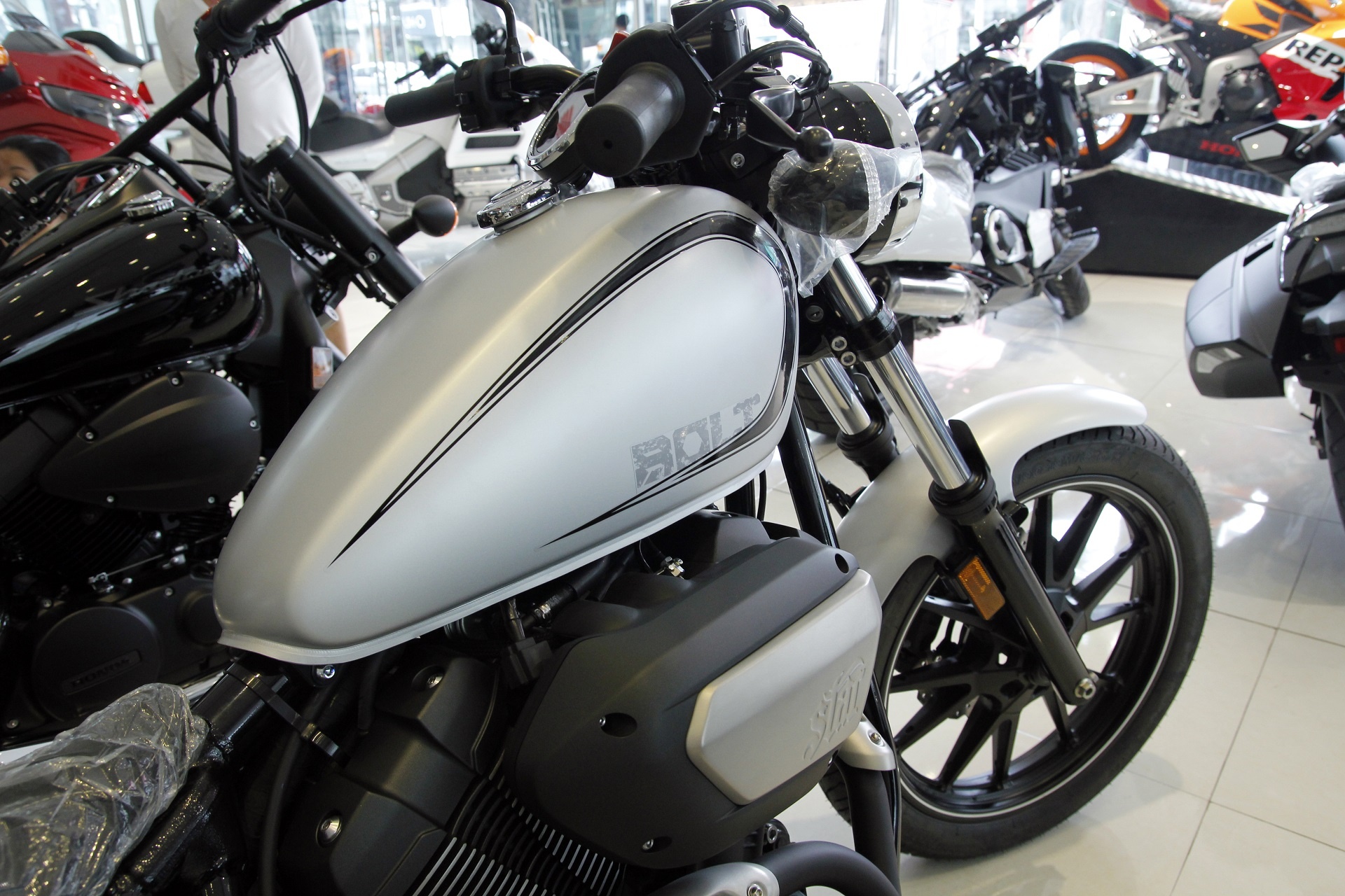 Yamaha Bolt là mẫu xe có thiết kế đậm chất cổ điển, mang phong cách Harley-Davidson. Phiên bản 2015 được cải tiến một số chi tiết cùng màu sơn bắt mắt vừa được nhập về.