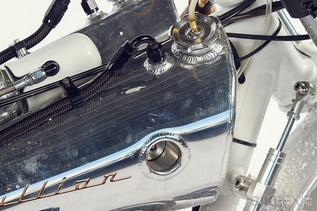 Derek tự thiết kế và chế tạo bộ khung phía sau, bình xăng và bộ vành cho sản phẩm độ của mình.