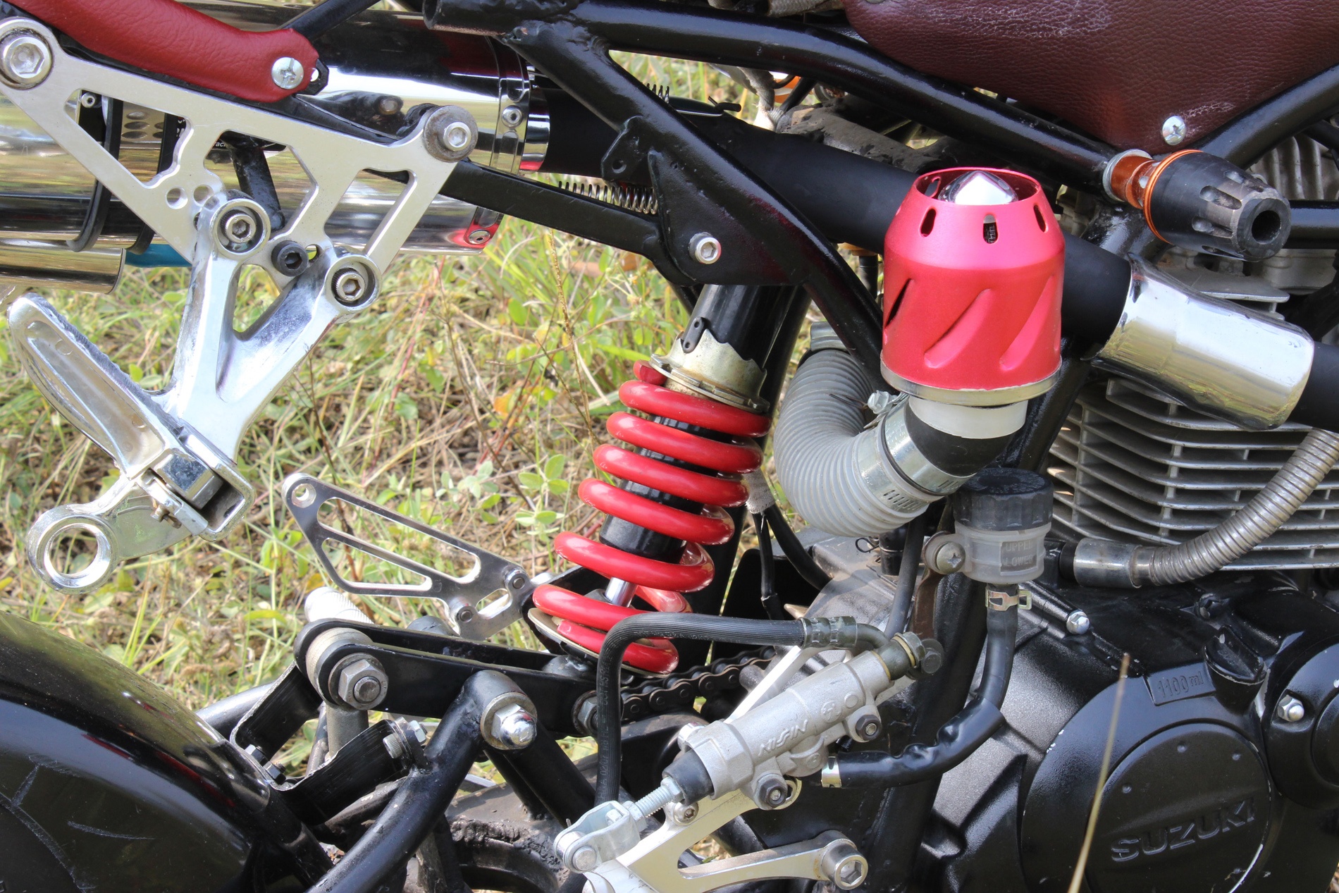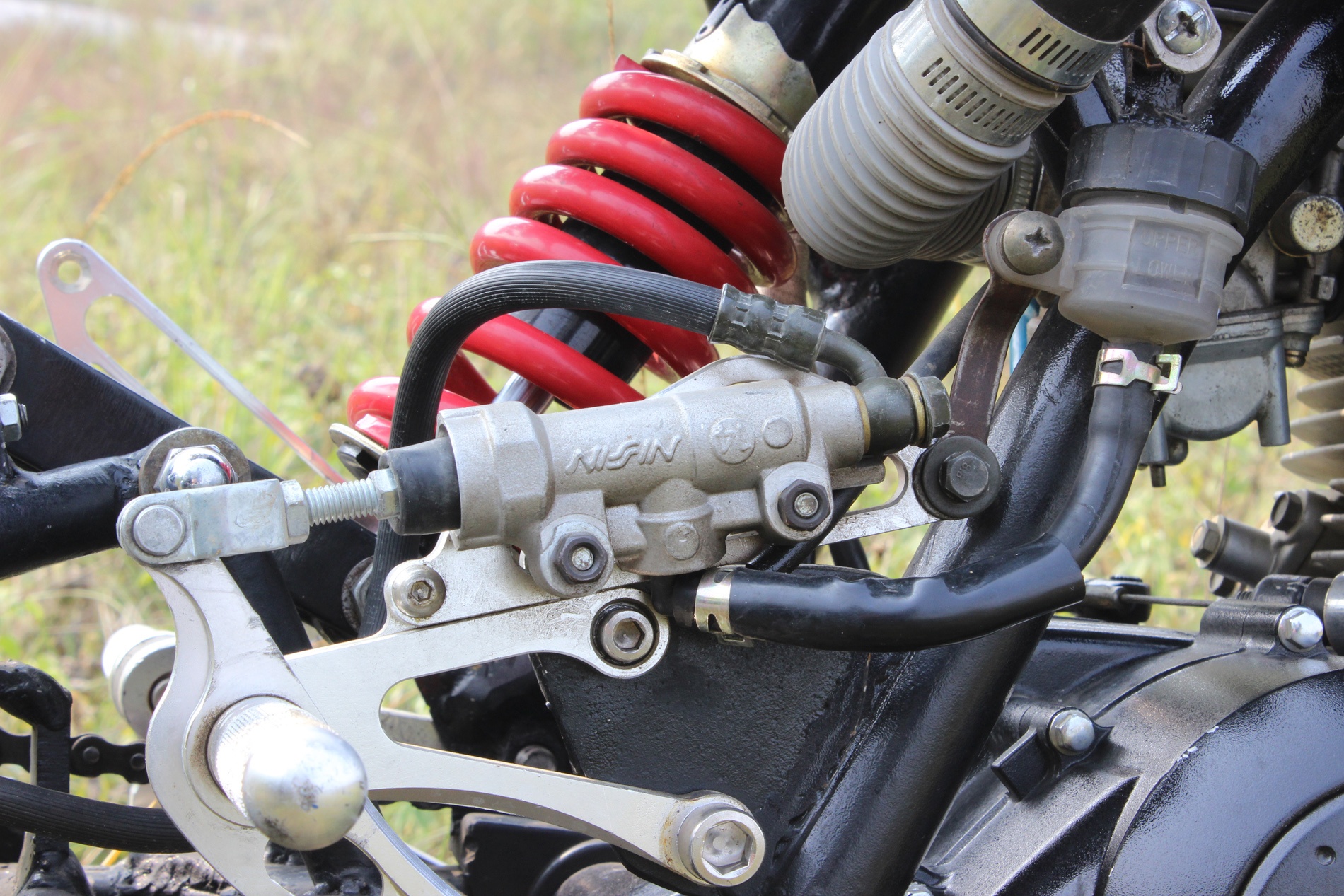 Khung xe được chia làm 2 phần với khung đỡ máy và khung đỡ yên, có thể tháo rời để chỉnh sửa. Linh trang bị cho xe giảm xóc sau dạng monosock, được lấy từ chiếc Suzuki FX125.
