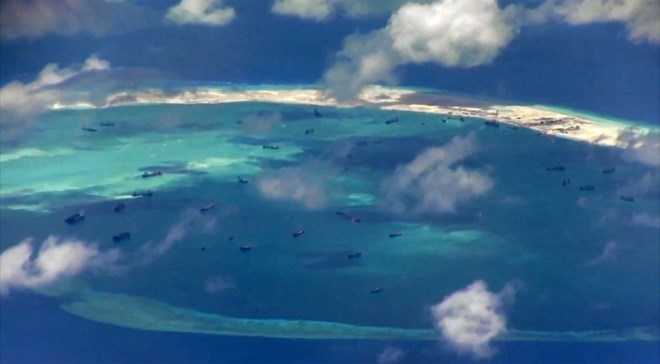 | Ảnh chụp một hòn đảo thuộc quần đảo Trường Sa khi máy bay Mỹ bay qua khu vực này. Ảnh: CNN |