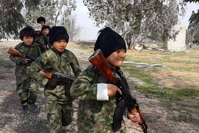 IS tung hình ảnh và video có cảnh huấn luyện chiến binh nhí từ khu vực Đông Nam Á hồi tháng 3/2015. Ảnh: Straits Times |