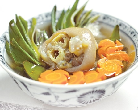 Atisô hầm móng giò: Chọn hoa atisô non, rửa sạch, chẻ dọc làm tư hay làm sáu, nhặt bỏ hết nhụy hoa bên trong, cuống hoa xắt lát mỏng. Giò hoặc móng lợn rửa sạch, chặt miếng vừa ăn, ướp ngấm với nước mắm, hành tím, hạt tiêu, rồi hầm đến hơi mềm thì cho bông atisô và cuống hoa vào tiếp tục hầm tới khi móng giò mềm rục, nêm nếm cho vừa miệng, múc ra bát rắc thêm hạt tiêu, rau mùi, ăn nóng.