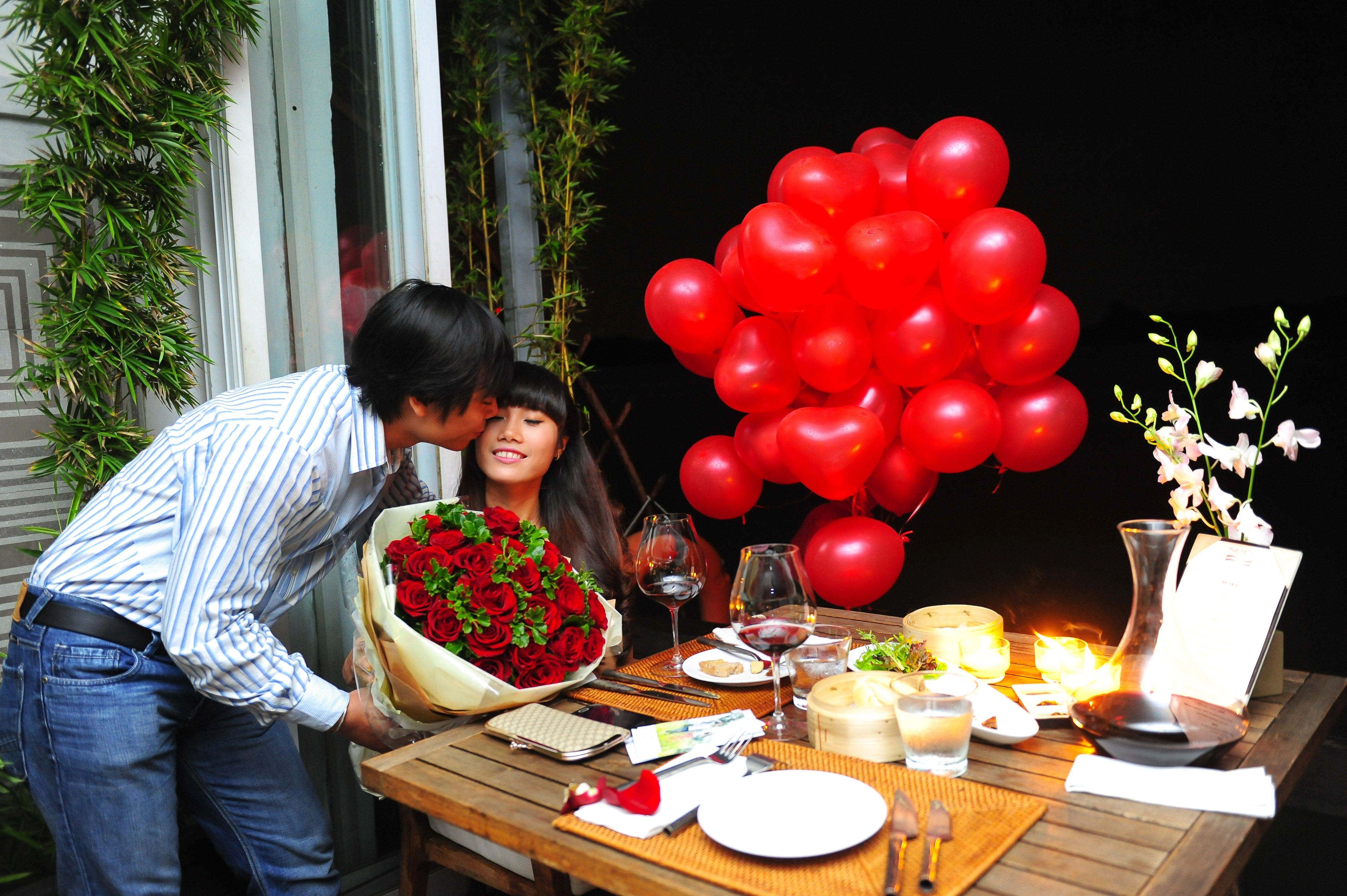 | Chị không giấu được niềm hạnh phúc và bày tỏ: “Trong sắc đỏ quyến rũ của hoa hồng và bóng bay, hương thơm từ hoa và nến, tôi không khỏi bất ngờ và xúc động vì một bữa tối thật lung linh và lãng mạn tại nhà hàng sang trọng cạnh bờ sông Sài Gòn”. |