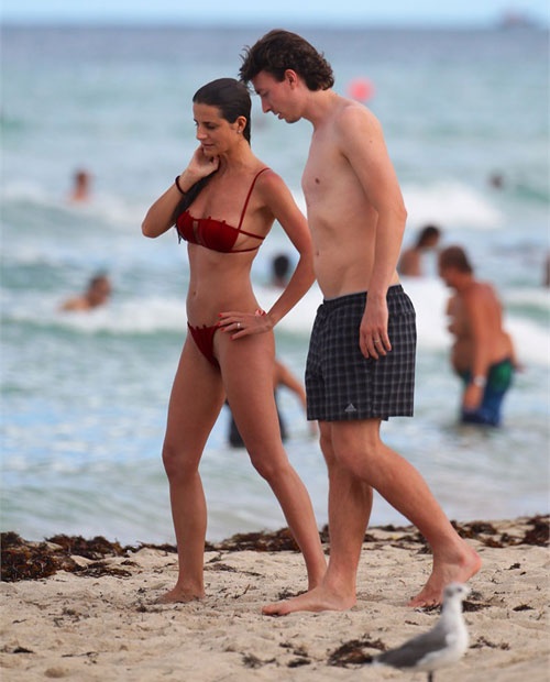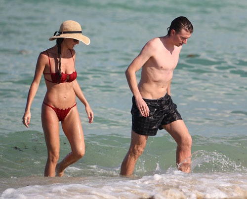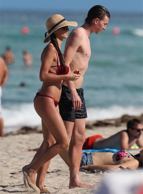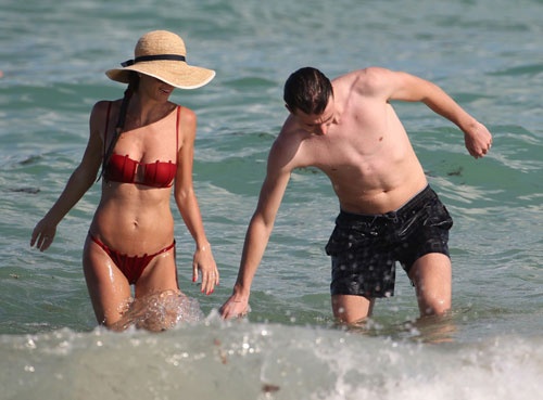 | Trong bộ bikini màu đỏ đun hai mảnh, bà xã mới của Montolivo trở thành thỏi nam châm hút mắt mọi đấng mày râu trên bãi biển. |