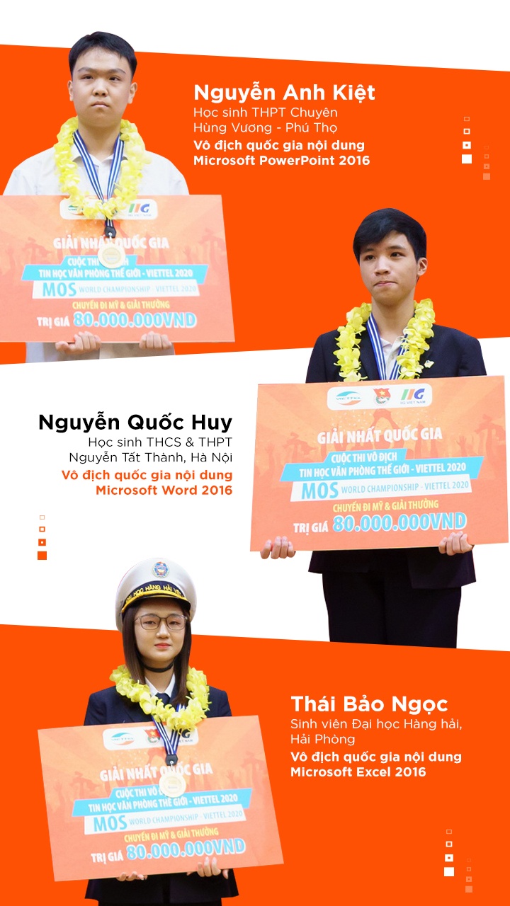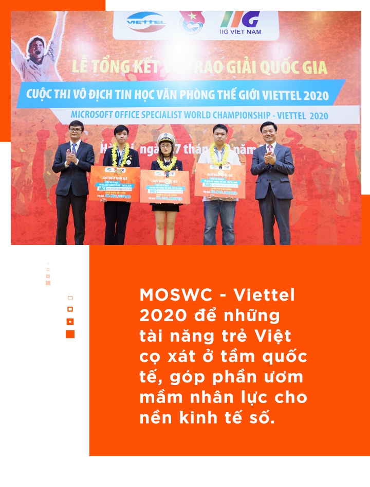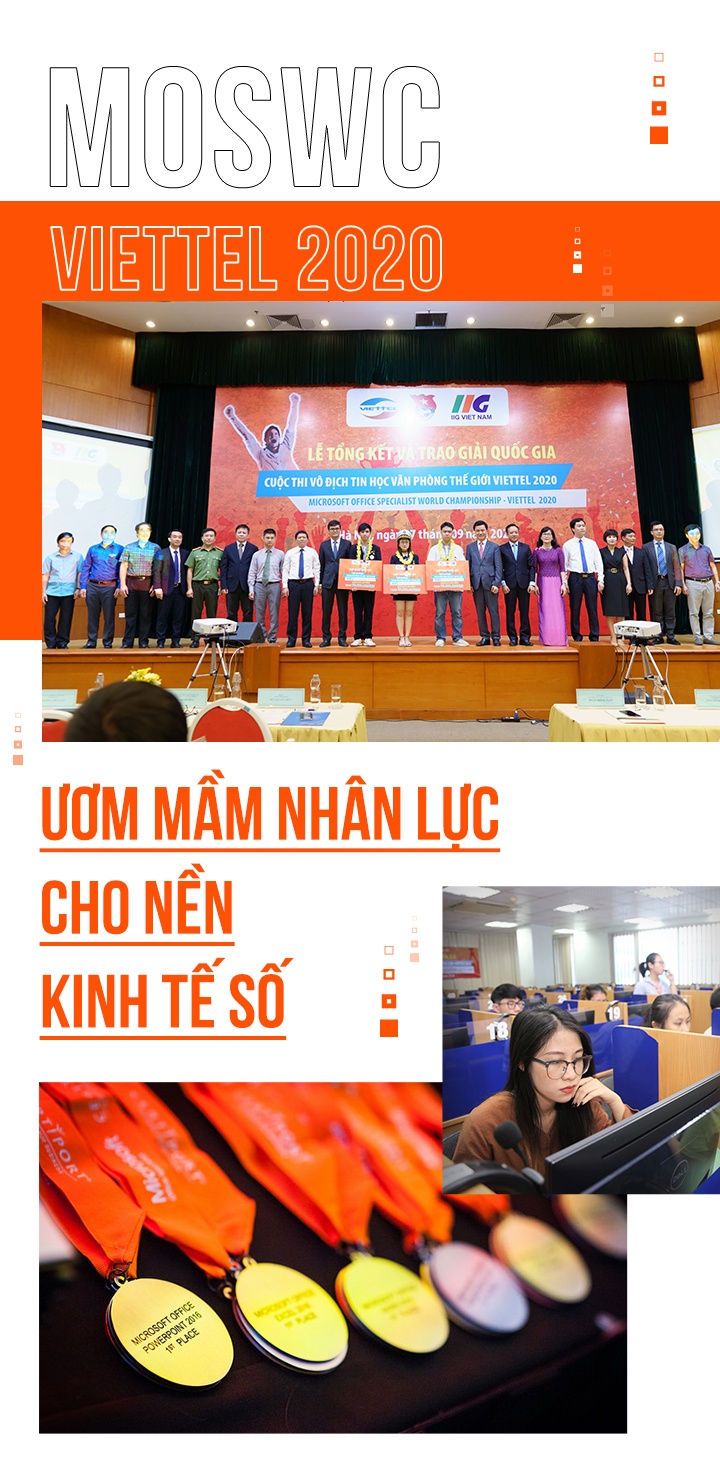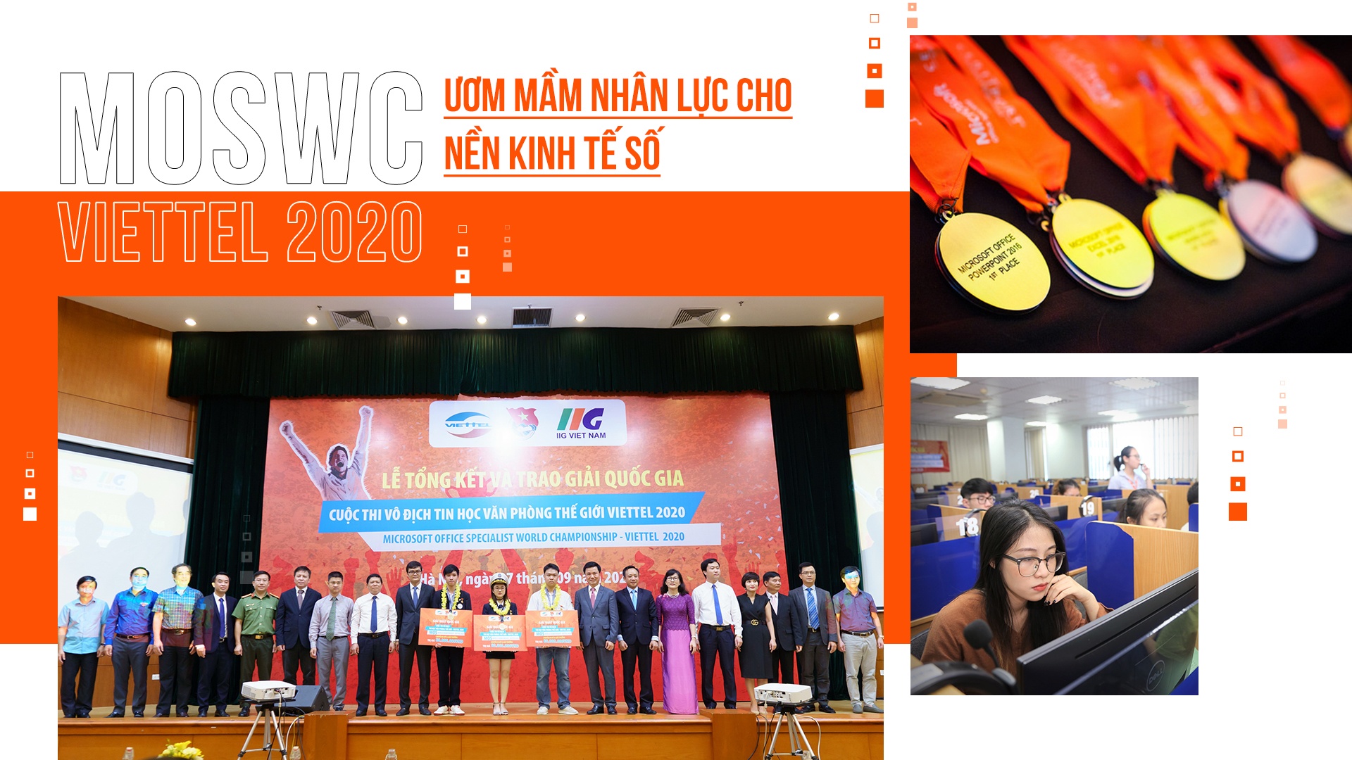 Trong đó, mùa giải Vô địch Tin học văn phòng Thế giới MOSWC - Viettel 2020 đánh dấu năm thứ 7 Viettel đồng hành cùng cuộc thi. Với sứ mệnh tiên phong kiến tạo số và trở thành tập đoàn công nghệ toàn cầu, Viettel luôn đầu tư mạnh mẽ để nâng cao chất lượng nguồn nhân lực cũng như gia tăng sự hấp dẫn thương hiệu, thu hút các tài năng công nghệ cao. Bên cạnh đó, giáo dục - đào tạo và thế hệ trẻ là một trong những ưu tiên hàng đầu trong định hướng về trách nhiệm xã hội của tập đoàn.