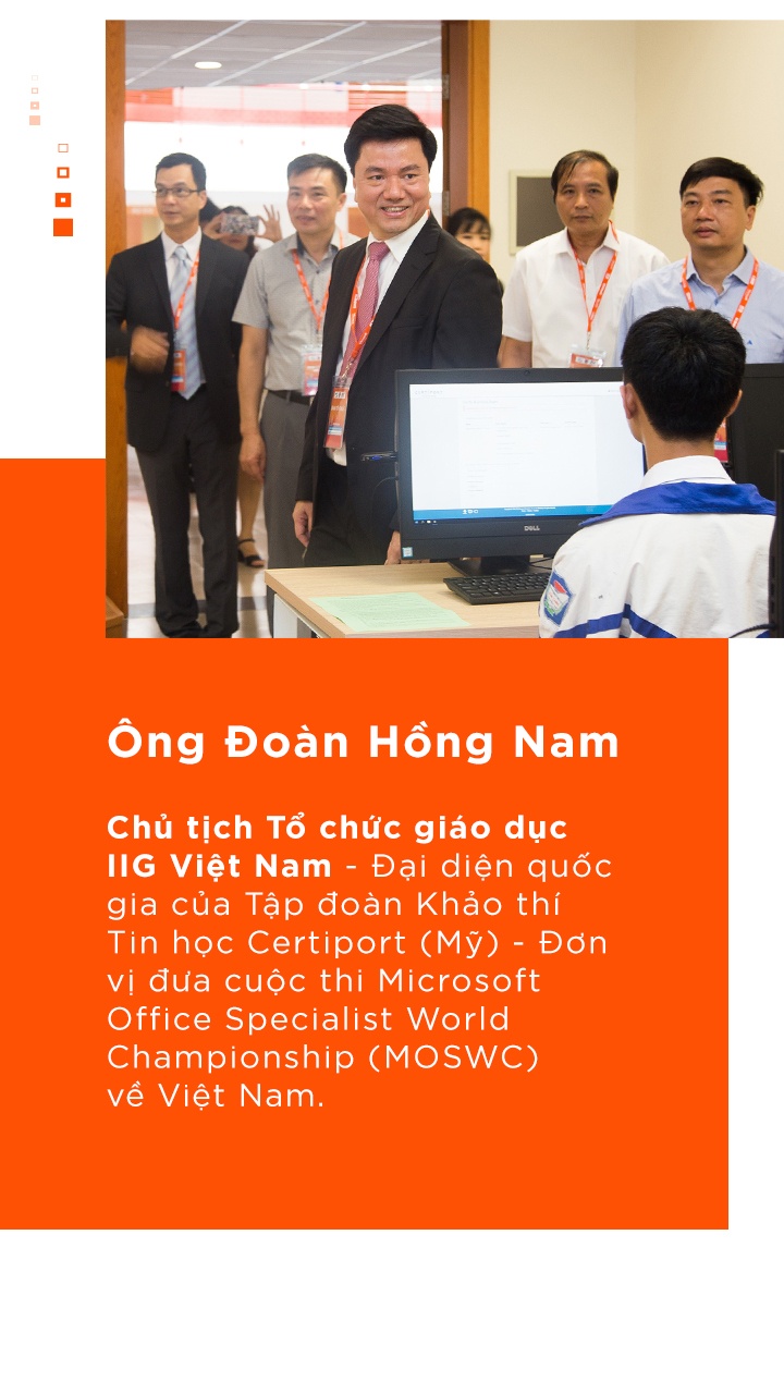 “Tôi từng sống và làm việc tại một số quốc gia có nền giáo dục phát triển và luôn tâm niệm phải góp phần nâng cao chất lượng giáo dục Việt Nam. Ở các nước phát triển, ngoại ngữ và công nghệ thông tin luôn được đặc biệt chú trọng trong nhà trường. Là đất nước có nền kinh tế hội nhập mạnh, Việt Nam trở thành điểm đến đầu tư của nhiều quốc gia, nên việc trang bị chứng chỉ ngoại ngữ và công nghệ thông tin theo chuẩn quốc tế cho người lao động càng trở nên quan trọng. Đó là động lực mạnh mẽ để tin tưởng rằng, việc đưa cuộc thi tin học văn phòng thế giới đến học sinh - sinh viên Việt Nam thực sự cần thiết”, ông Đoàn Hồng Nam chia sẻ.