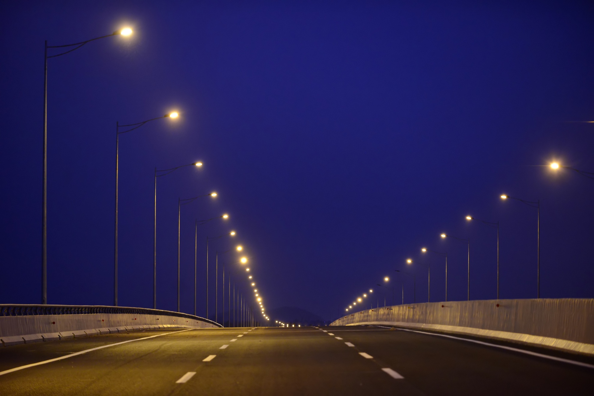 | Đèn cao áp chỉ được lắp tại một số nút giao với quốc lộ, trên cầu và các điểm quan trọng. |