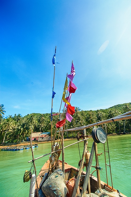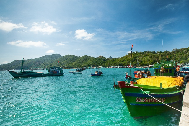 Sau gần 8 tiếng xe chạy, chúng tôi đến bến tàu Rạch Giá vào một buổi sáng nắng vàng ươm trên những bến tàu. Mất thêm 2 tiếng nữa để thuê tàu cao tốc ra Hòn Lớn, cuối cùng Nam Du cũng hiện ra như những gì tôi mong đợi. Mà không, phải nói là hơn những bức ảnh tôi đã xem đi xem lại nhiều lần. Biển, trời, sóng nước, cây cối, cái gì ở Hòn Lớn này cũng đẹp như tranh vẽ. Ngay đến cảng cá cũng thật nên thơ với những con tàu đầy màu sắc nổi bật lên trên làn nước trong vắt giữa bầu trời cao lồng lộng, xa xa là những con sóng bạc đầu, thay phiên nhau tấp vào bờ.