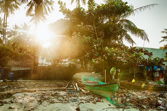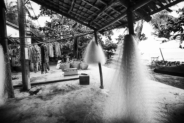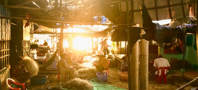 Nơi chúng tôi đến chỉ lưa thưa vài chục nóc nhà, mái tôn mái lá mộc mạc khép nép bên những hàng dừa. Hầu như nhà nào cũng có những cây cột thật cao, cây sào thật dài treo lủng lẳng mảnh lưới trắng xóa. Người dân nơi đây chủ yếu sống bằng nghề chài lưới, cuộc sống còn nghèo khó, cơ cực, đến nỗi nhiều chỗ không có được một con đường theo đúng nghĩa. Muốn đi từ đầu này đến đầu kia, người ta phải men theo một lối mòn nằm giữa những ngôi nhà với nhau.