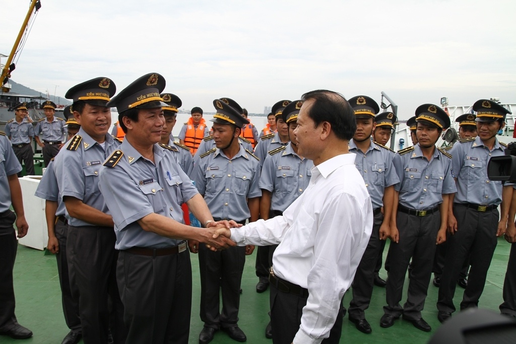 Sau khi nghe lãnh đạo Chi đội kiểm ngư số 3 báo cáo tình hình hoạt động của lực lượng trong thời gian qua, nhất là từ khi Trung Quốc hạ đặt trái phép giàn khoan Hải Dương 981 trong vùng biển Việt Nam, Phó thủ tướng biểu dương những thành tích cũng như cố gắng của lực lượng Kiểm ngư trong quá trình thực thi nhiệm vụ bảo vệ chủ quyền biển đảo của Tổ quốc.