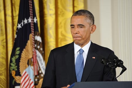 Ngày 7/8, Obama phát biểu tại Nhà Trắng, cho biết Mỹ sẽ tiến hành các cuộc không kích tại Iraq để bảo vệ nhân viên của mình nhưng sẽ không gửi bộ binh tới đây. Sự trỗi dậy của Nhà nước Hồi giáo (IS) tự xưng tại khu vực Trung Đông đã trở thành mối đe dọa khẩn cấp cho an ninh toàn thế giới. Ảnh: Reuters