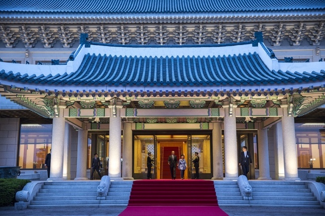 Ông Obama và Tổng thống Hàn Quốc Park Geun-hye đang bước ra khỏi Nhà Xanh để tiến về khu vườn của dinh tổng thống tại thủ đô Seoul, ngày 25/4. Ảnh: White House