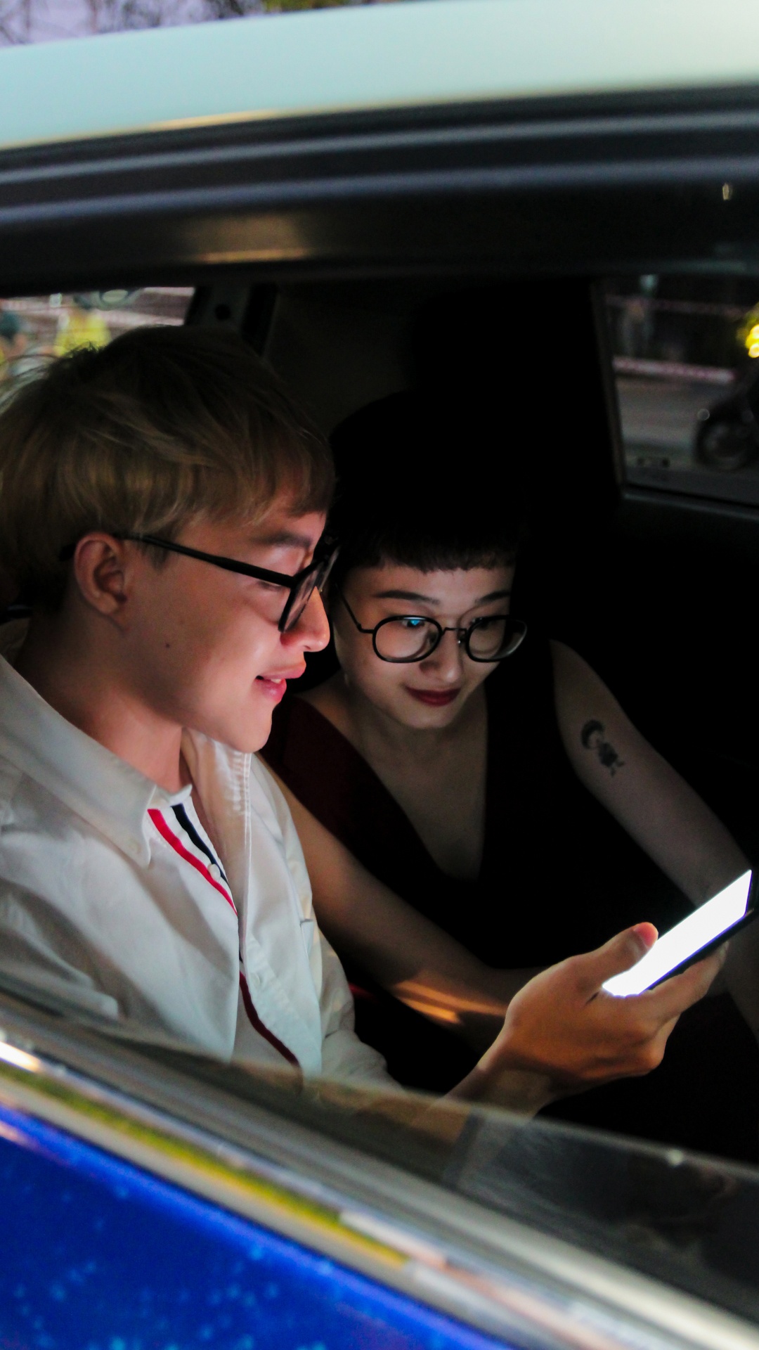 | Buổi tối, cả hai có hẹn cùng đồng nghiệp cũ. Chúng tôi dự định uống một chút cocktail trong khi hàn huyên ôn chuyện cũ. Để đảm bảo an toàn, tôi quyết định đặt GrabCar đến chỗ hẹn. |
