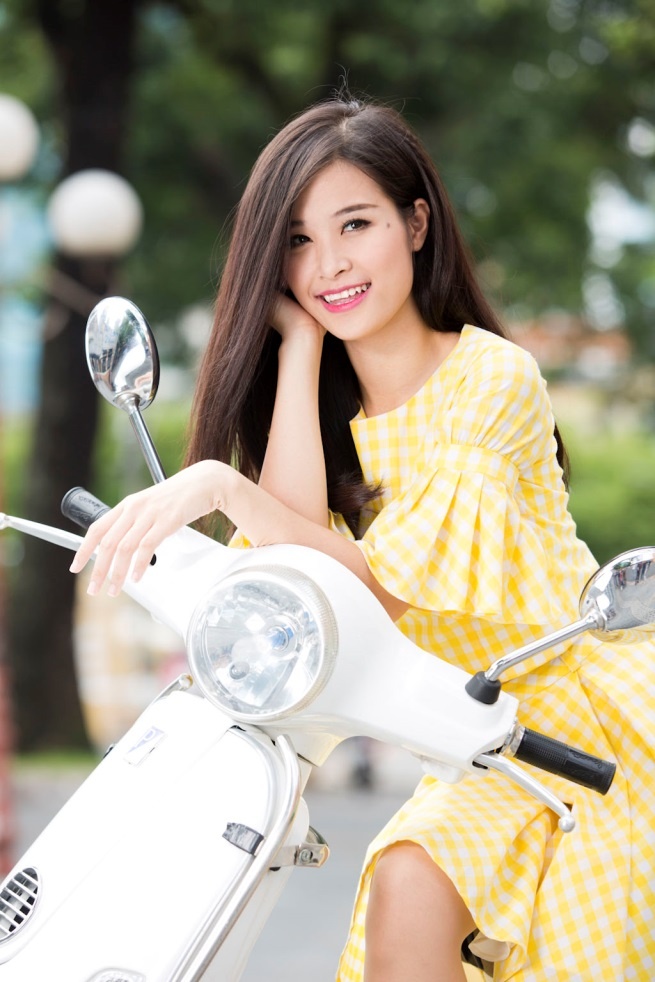 | Màu vàng ngọt ngào của trang phục mang lại cho cô nhiều hứng khởi để tập hát và sáng tác ca khúc cả ngày. Trong showbiz Việt hiện nay, Đông Nhi là một trong những ca sĩ chăm chỉ ra bài hát mới nhất. |