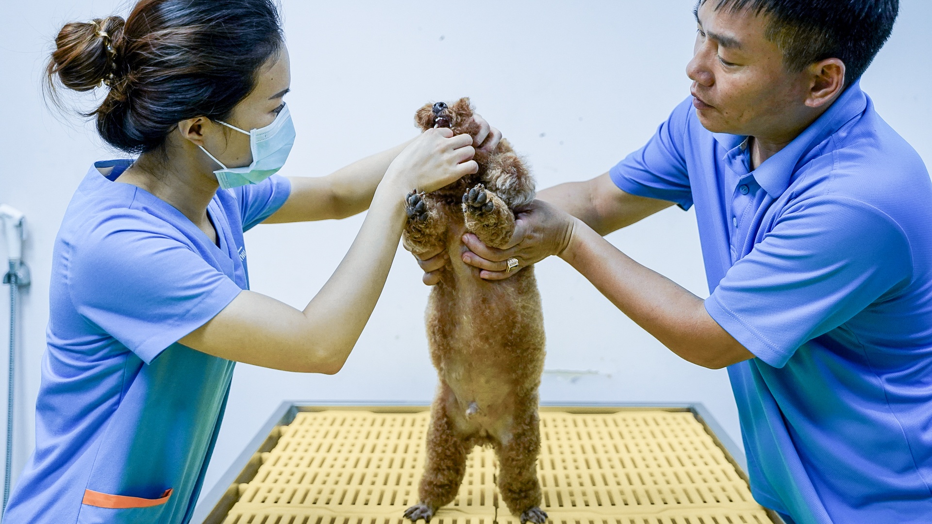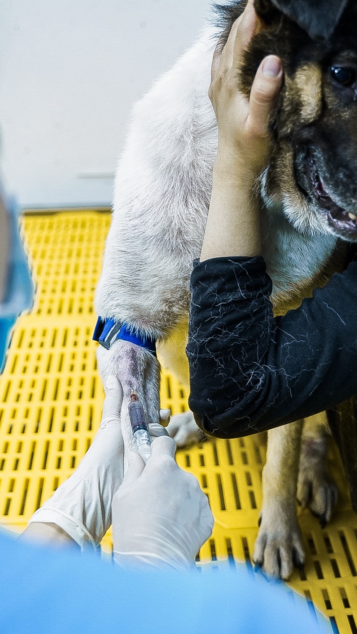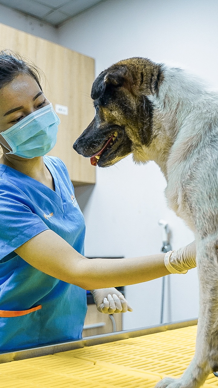 | Tun bị sưng ở nách, nghi có khối u. Tôi đo các chỉ số cơ thể, xét nghiệm máu. Dù cao lớn, Tun khá ngoan và hợp tác, có nhiều bạn “đanh đá”, tôi phải nhờ chủ rọ mõm, dành thời gian trước trò chuyện làm quen hay dùng thức ăn để dụ. |