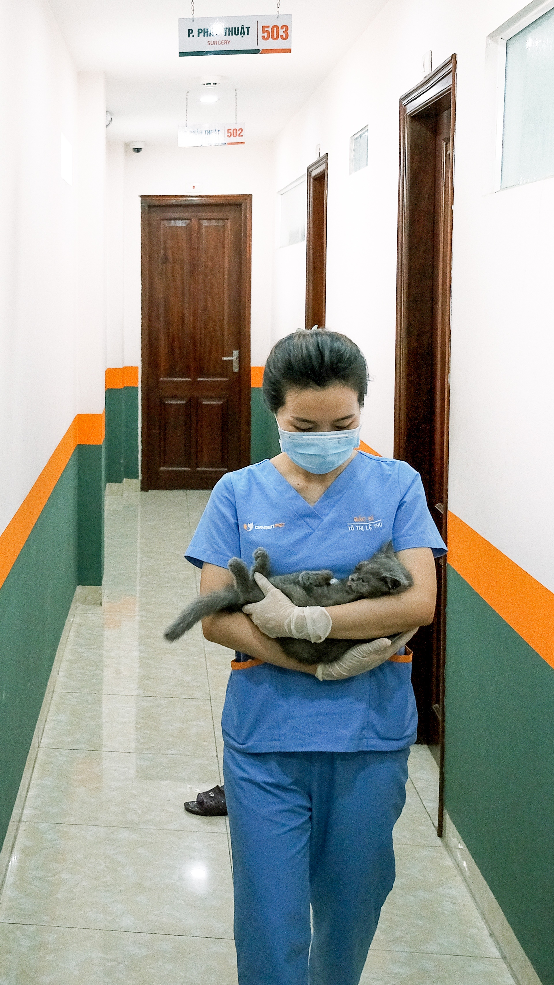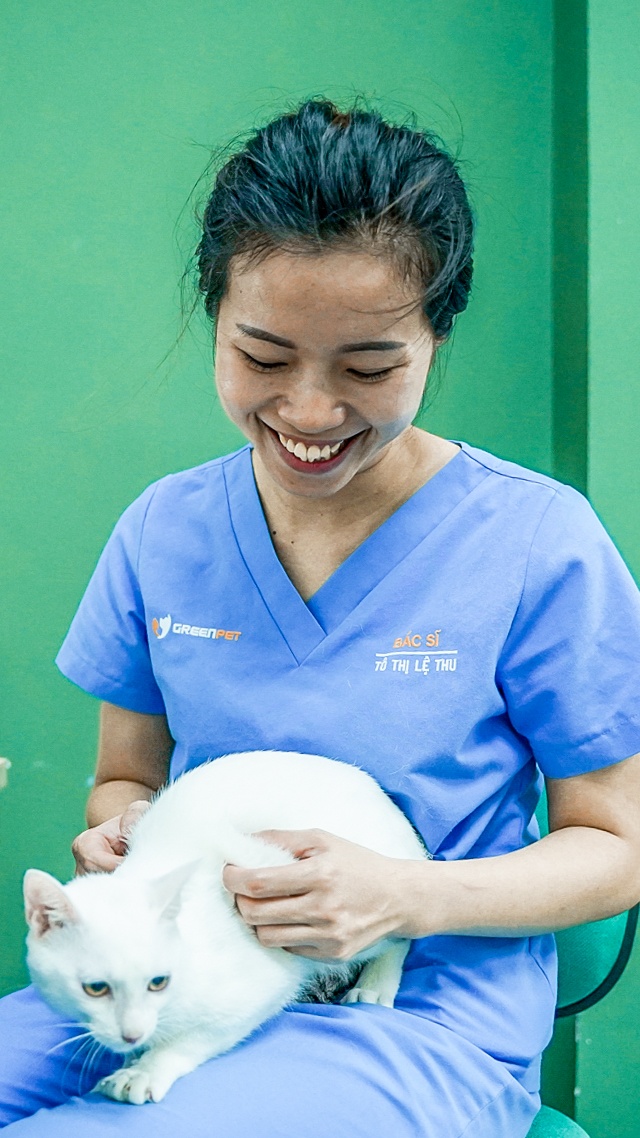 | Tôi tên là Tô Thị Lệ Thu (30 tuổi), làm bác sĩ thú y 7 năm nay. Hiện tôi làm việc tại một bệnh viện thú y tại Hà Đông, Hà Nội. Công việc hàng ngày của tôi chủ yếu là thăm khám, chữa trị hoặc thực hiện phẫu thuật cho thú cưng, chủ yếu là chó và mèo. |