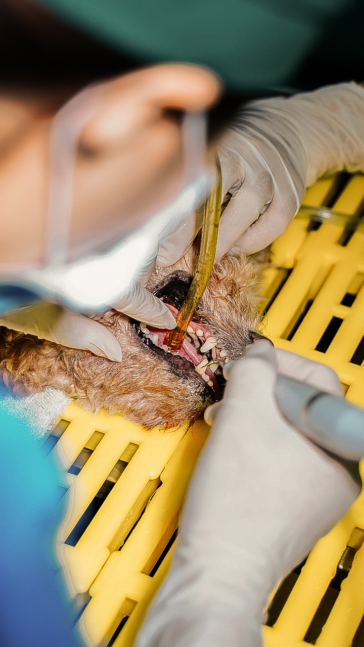 | Hôm nay, tôi đem theo Lady - chú chó tôi nuôi đến bệnh viện chơi và lấy cao răng. Tôi thực hiện gây mê Lady khoảng 15 phút. Chó cũng như người, vì ăn nhiều loại thức ăn, cả thịt cá mà không đánh răng nên cao răng nhiều, phải thường xuyên lấy mới sạch sẽ. |