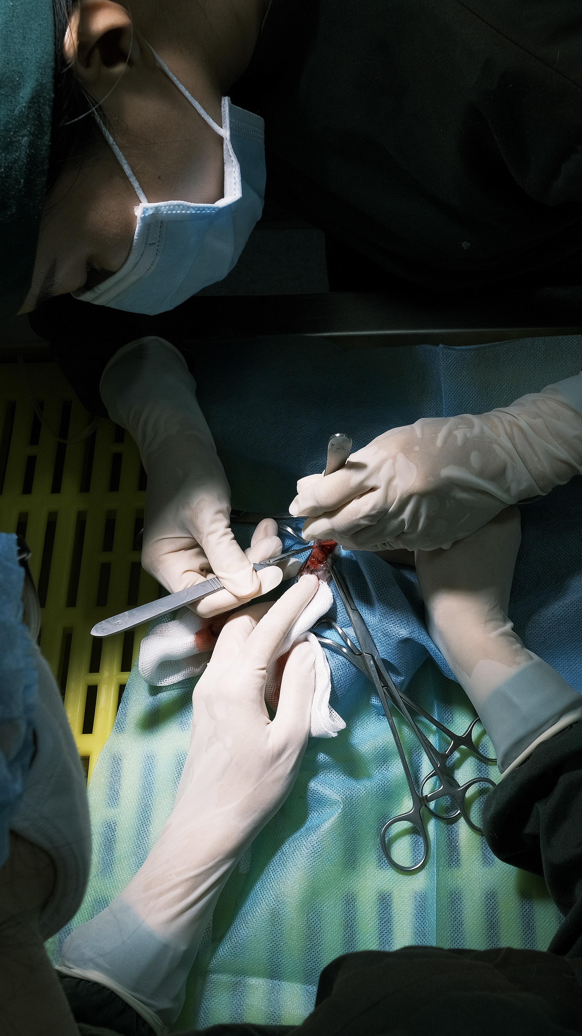 | Mun sẽ ở lại bệnh viện 3 ngày để theo dõi vết mổ. Mun có khả năng phục hồi khá tốt so với một số trường hợp tương tự. Vết thương sau phẫu thuật tốt, không bị chảy dịch. |