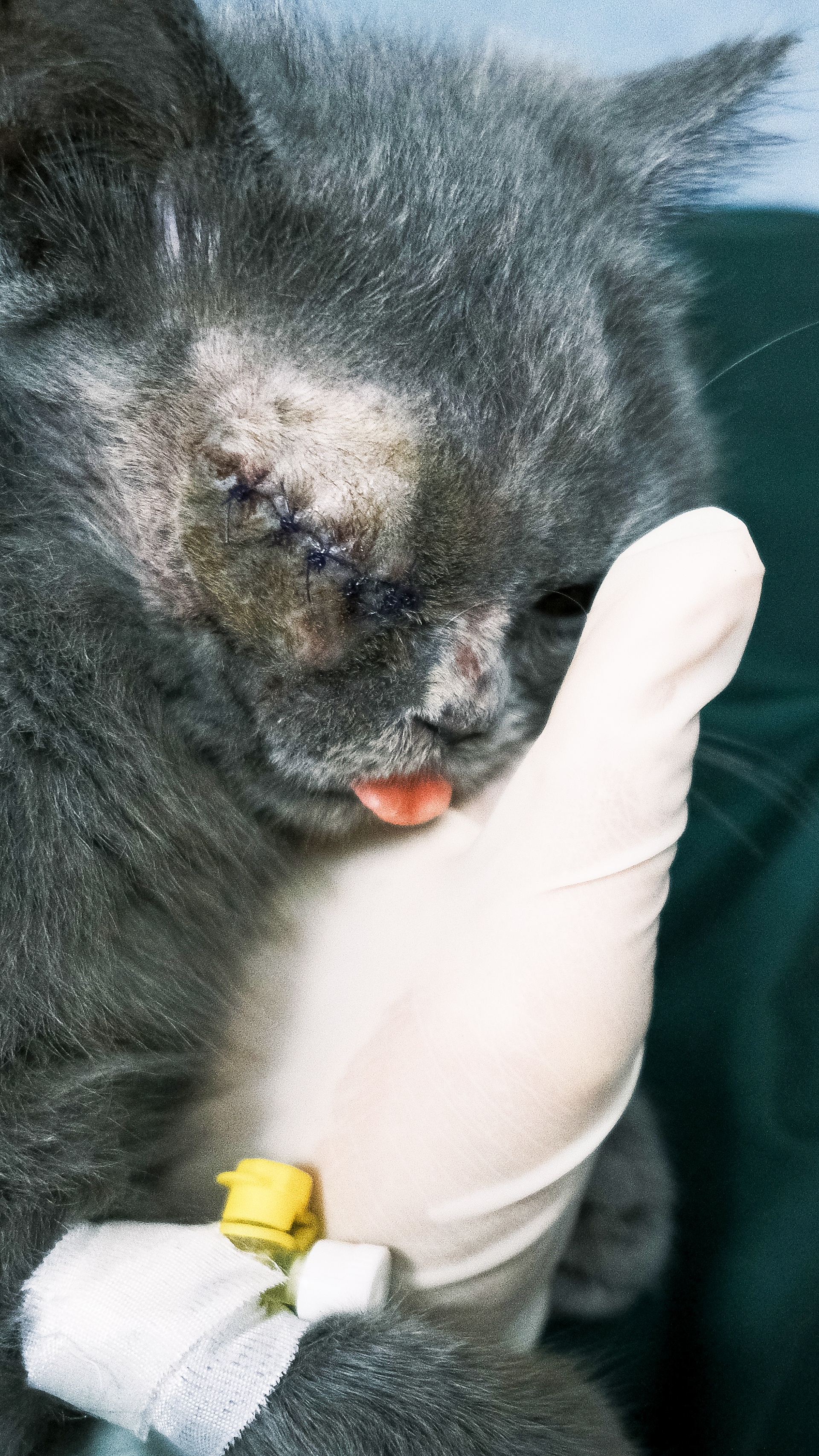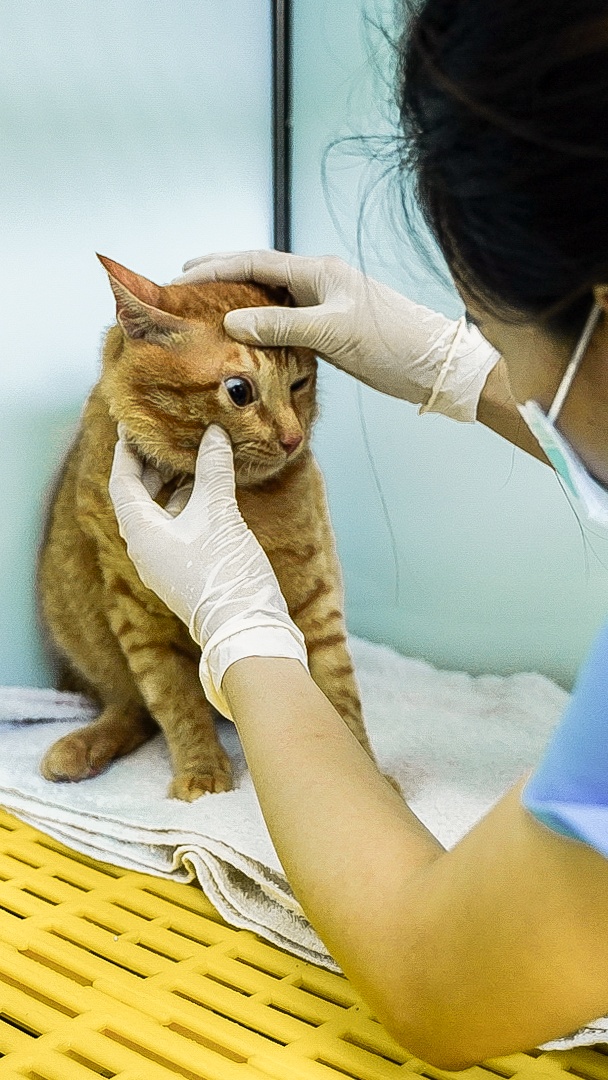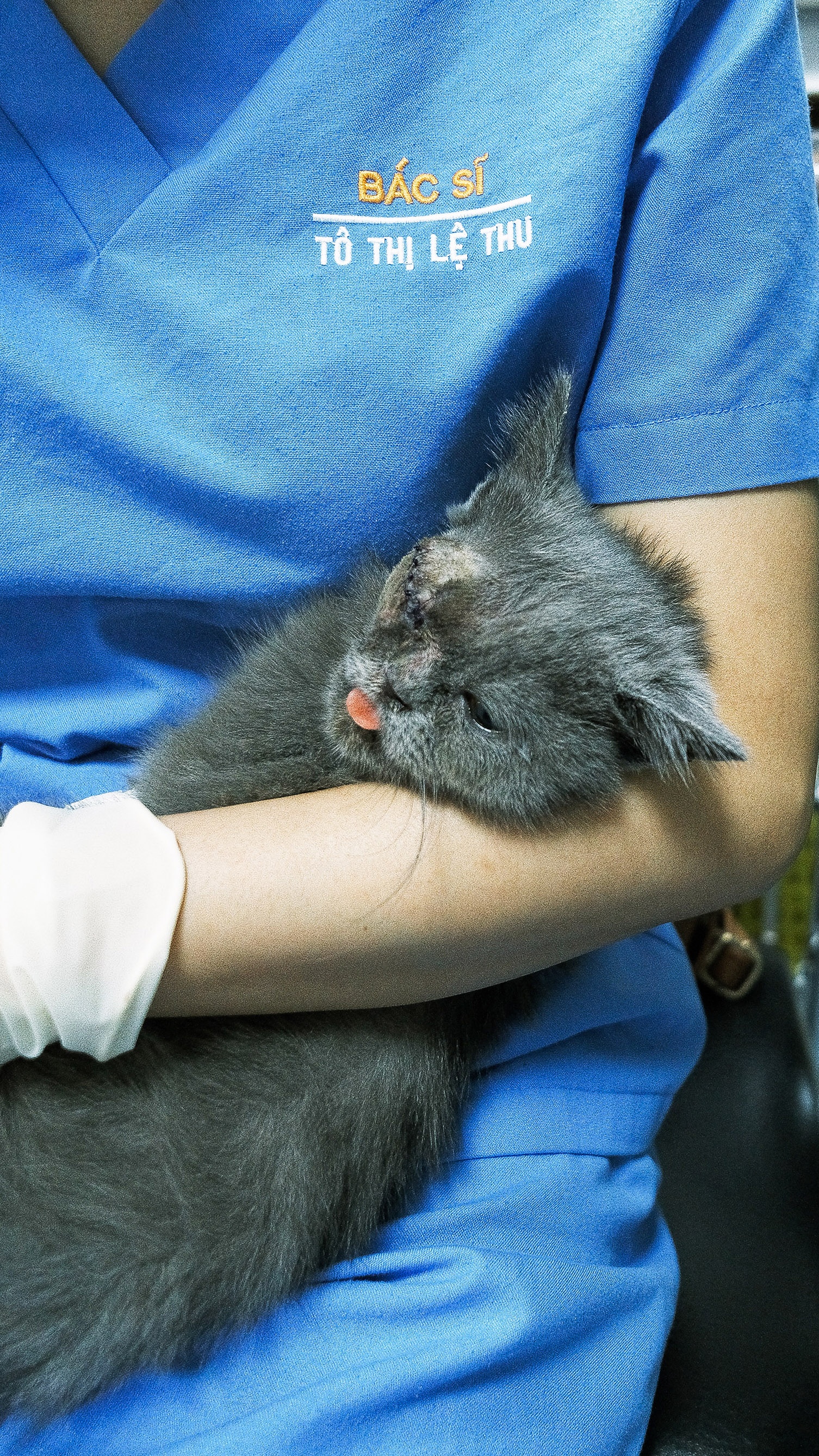 | Chiều, tôi mổ cho bạn mèo tên Mun, 5 tháng tuổi, bị chấn thương hỏng mắt nên được chỉ định phẫu thuật cắt bỏ mắt. Trước khi phẫu thuật, tôi kiểm tra tình trạng con mắt bị hỏng, tiêm thuốc giảm đau, cầm máu, kháng viêm trước khoảng 30 phút đồng thời gây mê để vệ sinh mắt cần cắt bỏ. |