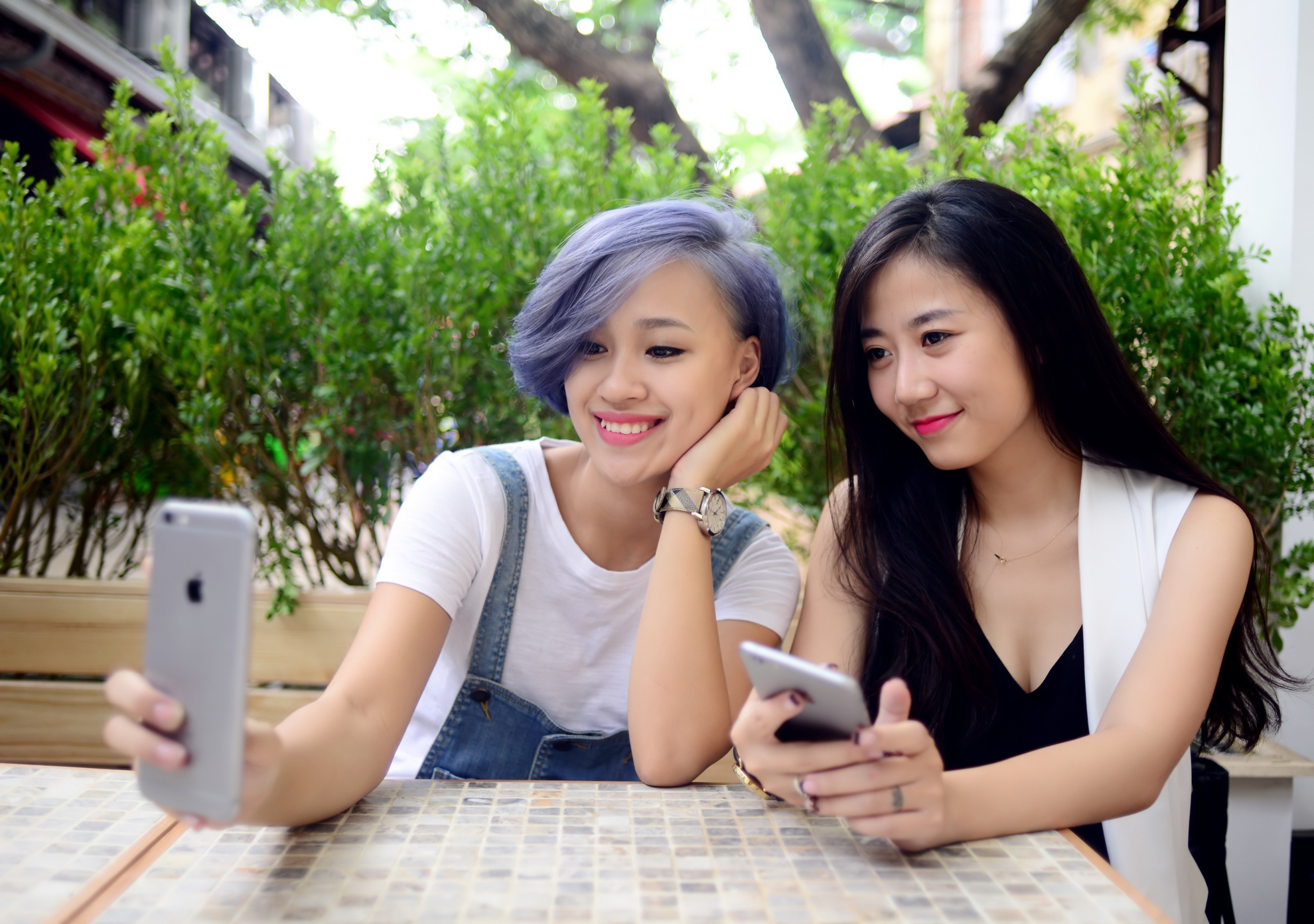 Đến gần trưa, Tít hẹn người bạn trên phố và... khoe mái tóc mới của mình.