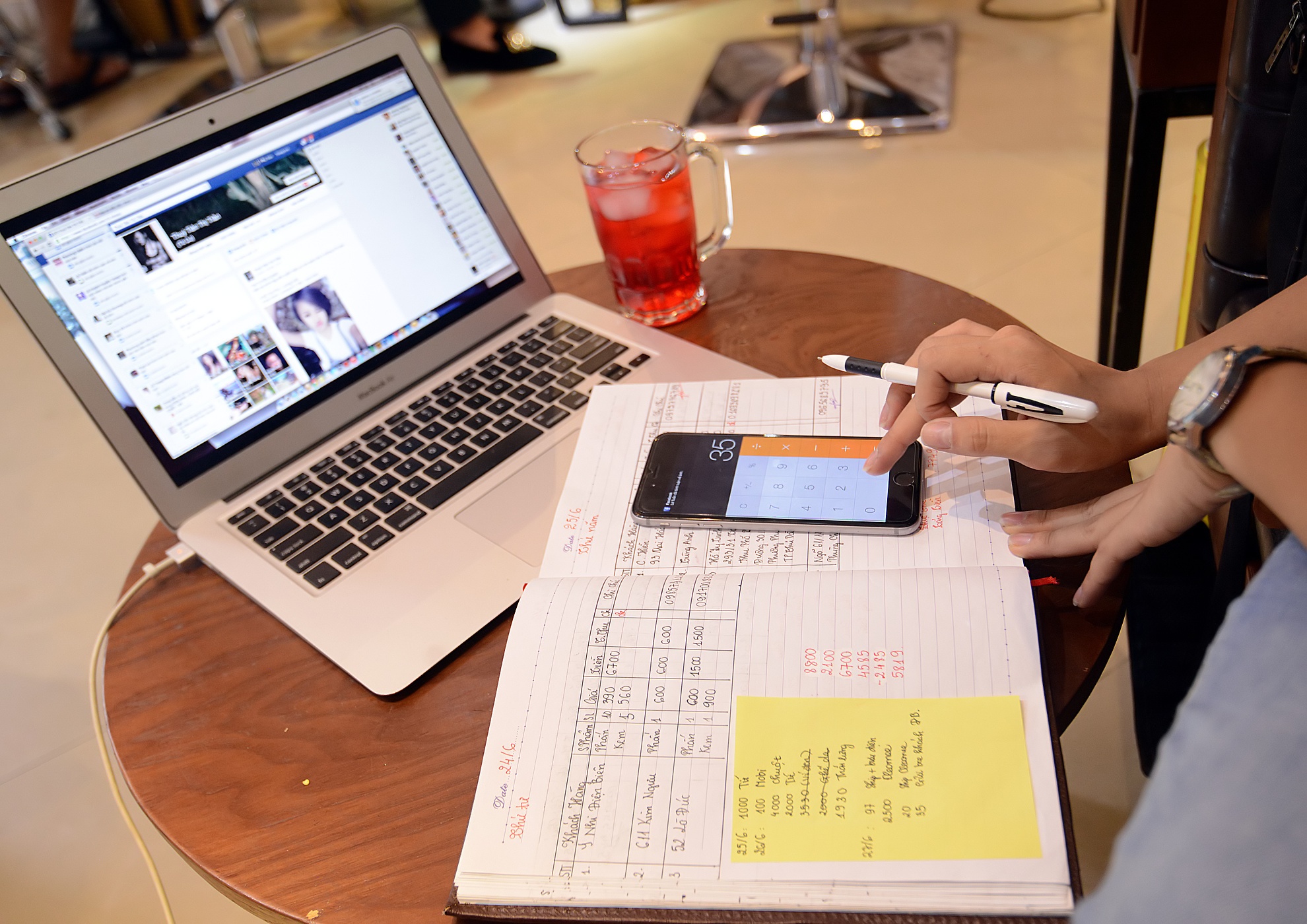 Cô cũng làm công việc của kế toán viên, lo sổ sách thu chi hàng ngày.