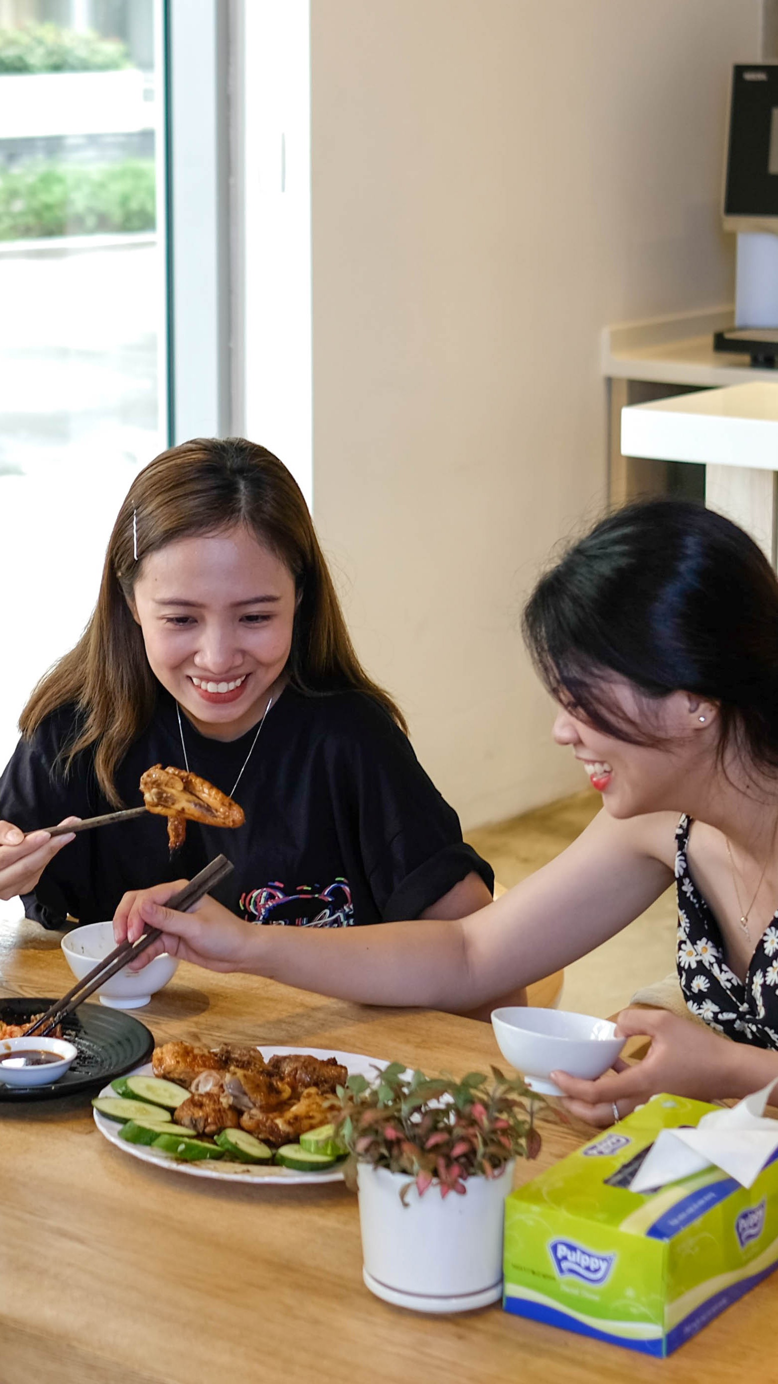 | Chúng tôi cùng nhau sơ chế thực phẩm. Hôm nay, chúng tôi làm món gà nướng. |