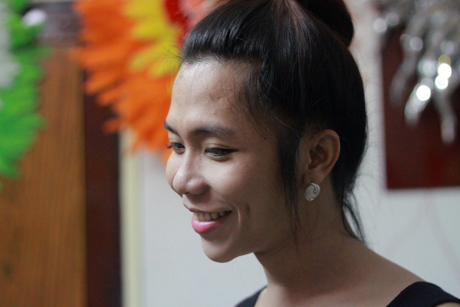 | Hôm nay, cô làm giám khảo cho cuộc thi văn nghệ của người chuyển giới tại một quán bar ở Q.1. |