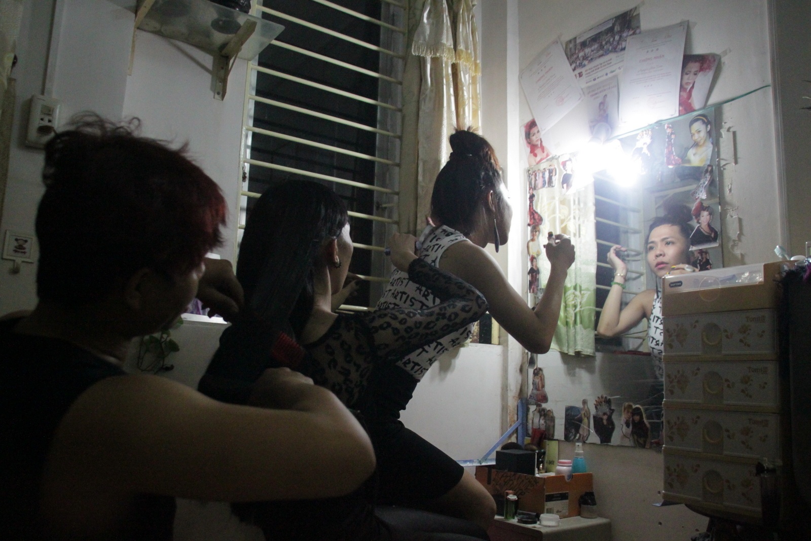 | Trang điểm, mặc quần áo xong xuôi, Jessica và các cô gái chuyển giới khá nữ tính. |